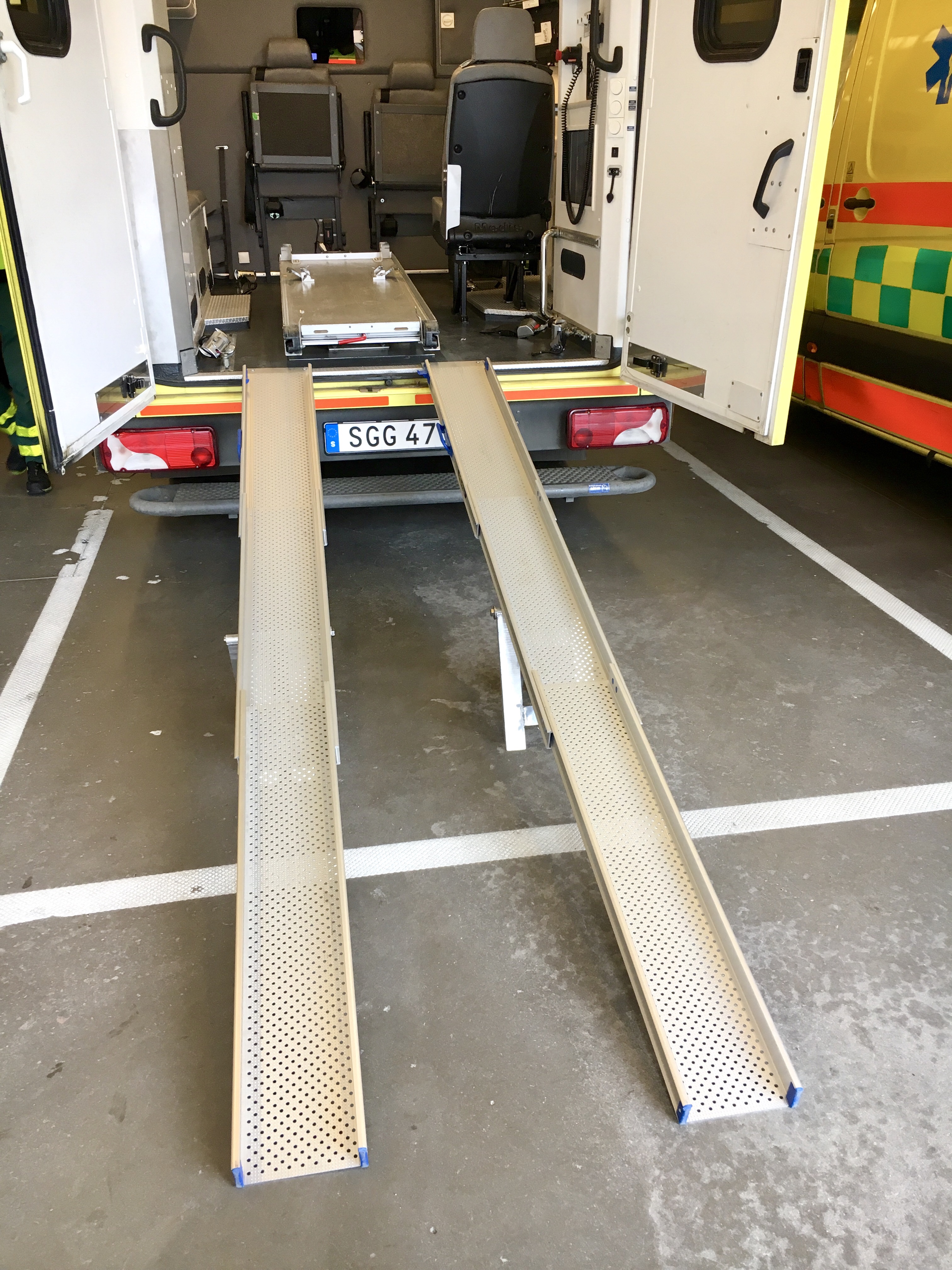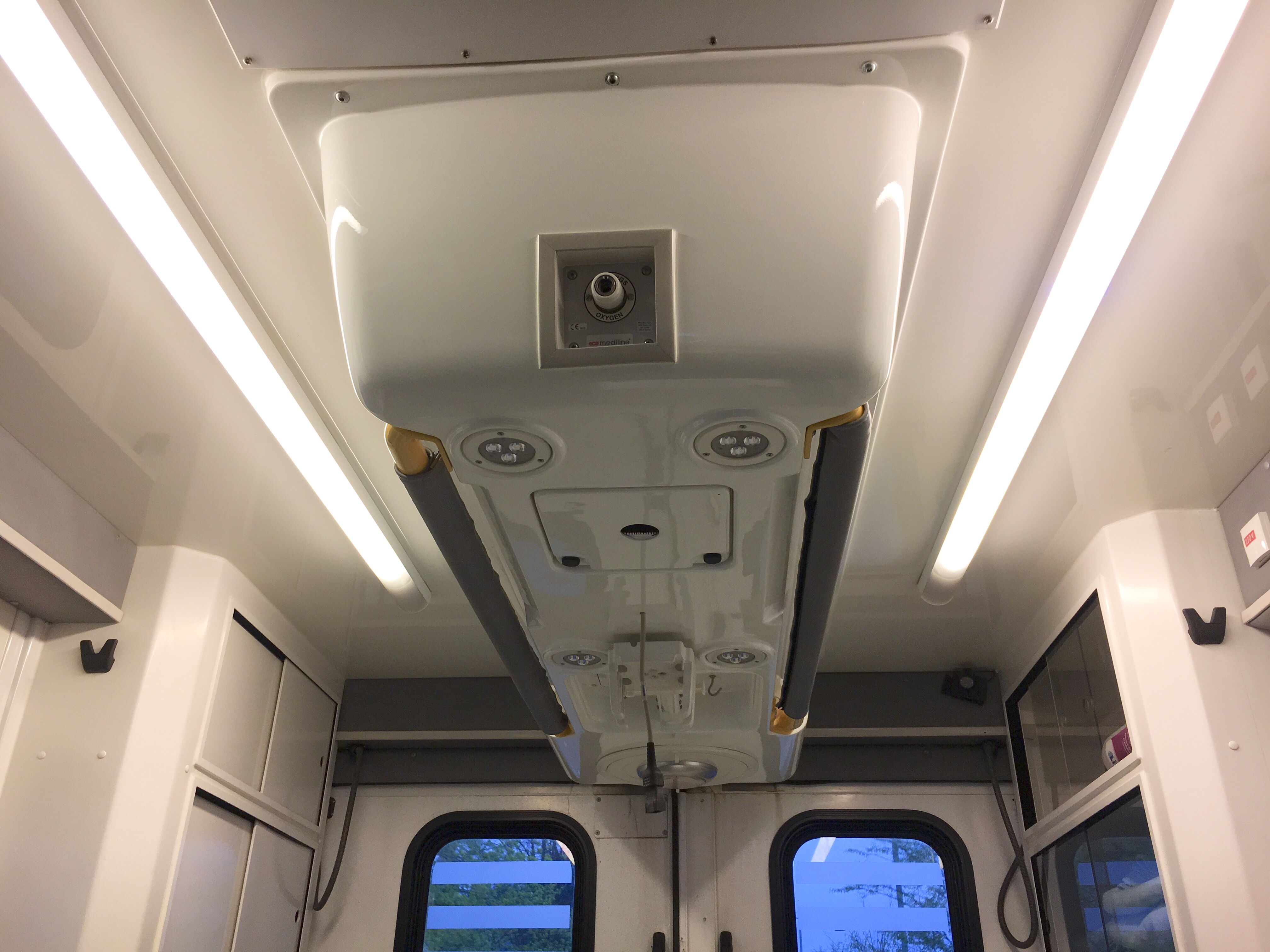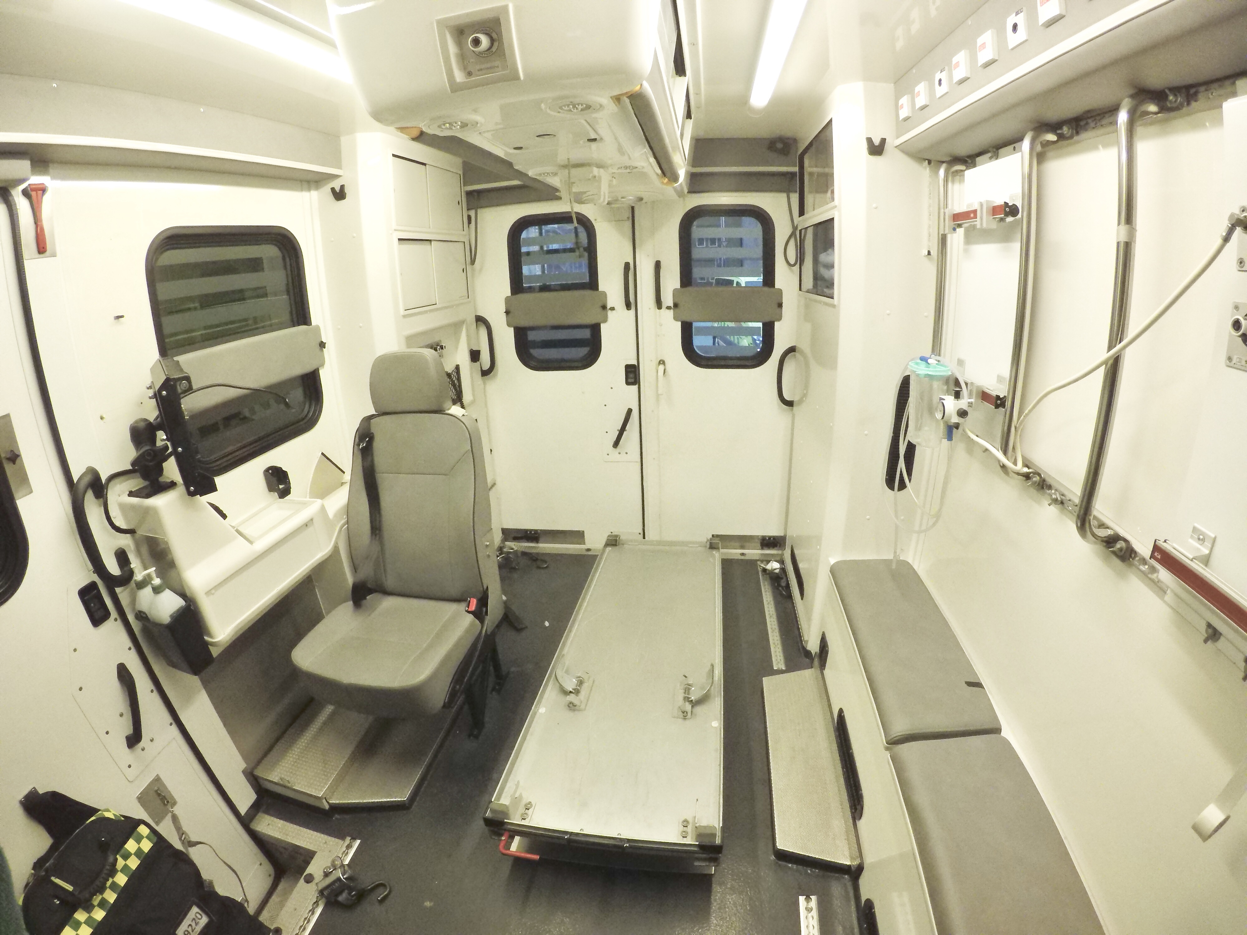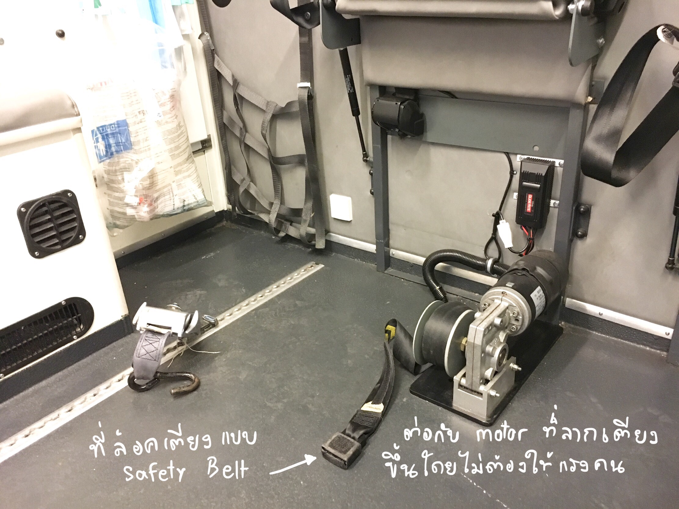 แล้วจะเอาเตียงหนักๆ ขึ้นรถแอมยังไง ?เค้ามีตัวช่วยคือจะเอาสายพาน (เหมือนเวลาขึ้นคลองอะ) วางพาดไว้ที่ปลายรถ แล้วจะเข็นเตียงขึ้น นอกจากนี้ เค้าจะมี motor พิเศษที่สามารถลากเตียงขึ้นไปบนรถได้ ดังนั้นเจ้าหน้าที่ไม่ต้องใช้แรงกายเลยจ้า เค้าจะมีล็อคแบบเข็มขัดนิรภัยที่ต่อกับ motor และใต้เตียง ตัวล็อคนี้ก็จะลากเตียงขึ้นไป พอลากขึ้นไปเสร็จ ก็จะล็อคเตียงทั้ง 4 มุม โดยใช้สายเกี่ยวกับล้อของเตียง สายนี้ยืดได้แบบเข็มขัด Safety Belt เลย มั่นคงและปลอดภัยมากกกกก
