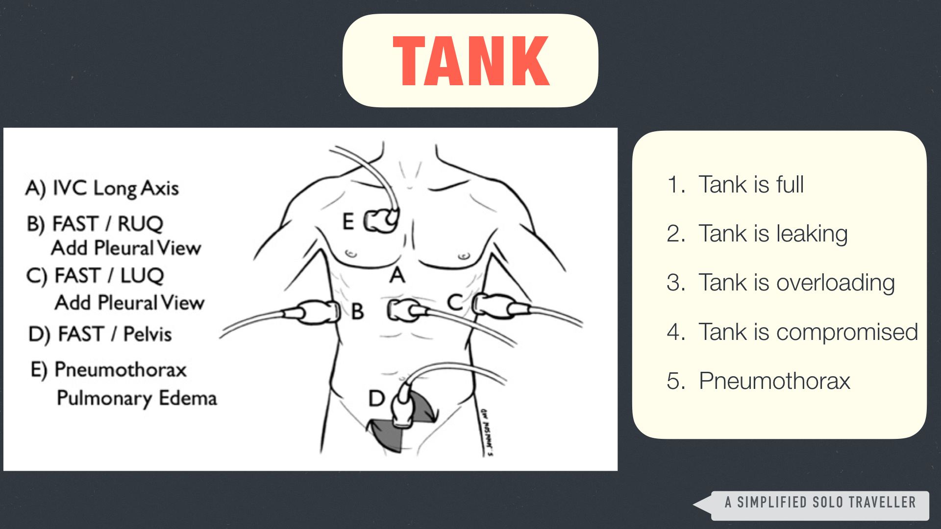 2. Tank ประเมินเรื่อง volume status, fluid loss และ pneumothorax คือดู IVC, JVP, lung, pleural cavity, abdominal cavity สิ่งที่ต้องดูคือ