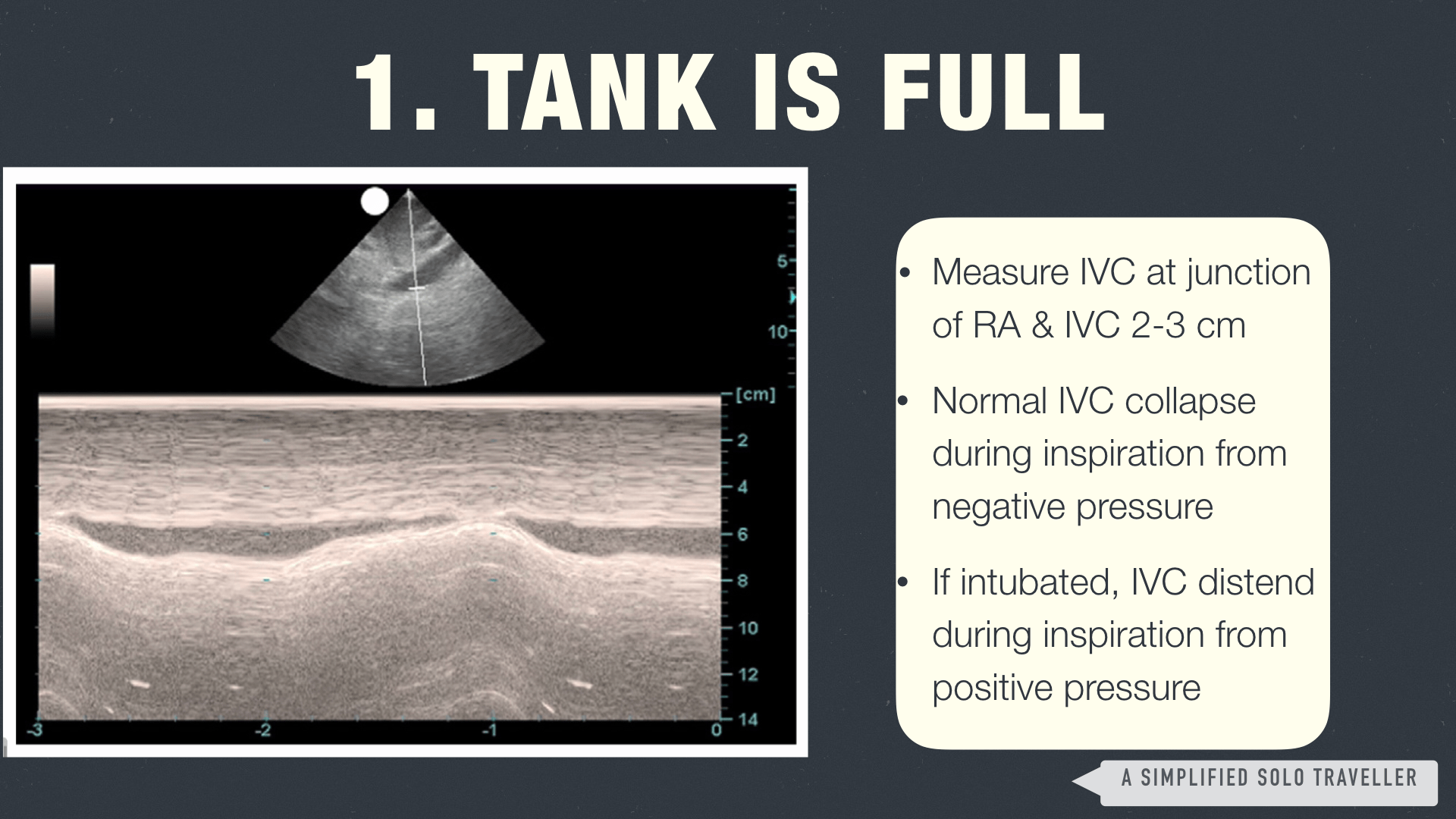 🥃 Tank is full เช่นให้การให้ iv fluid ใน septic shock ถ้าน้ำพอแล้วก็พิจารณาให้ vasopressor ให้ใช้ probe curvilinear / echo วัดที่ IVC subxiphoid view บริเวณใต้ตับห่างจาก RA ประมาณ 2-3 cm