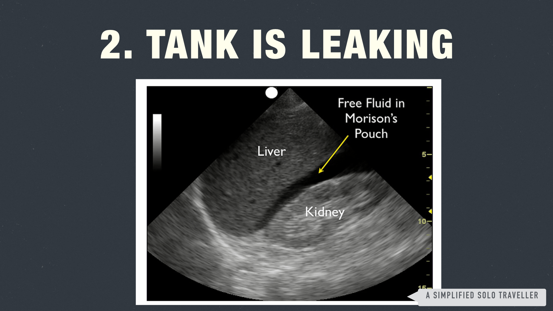 🥃 Tank is leaking ใช้ probe curvilinear เหมือนทำ FAST เช่นเสียเลือด เช่น hemothorax, intra-abdominal free fluid (ultrasound สามารถตรวจพบ fluid เพียง 100 ml ได้)