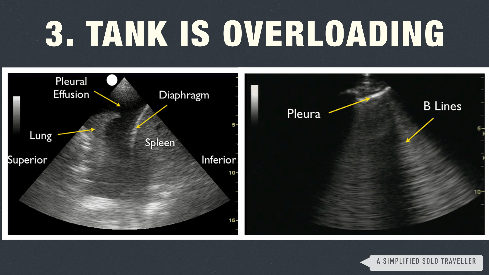 🥃 Tank is overloading เช่นน้ำท่วมมี pulmonary edema, heart failure ใช้ probe curvilinear จะพบ B line และ pleural effusion เป็นต้น