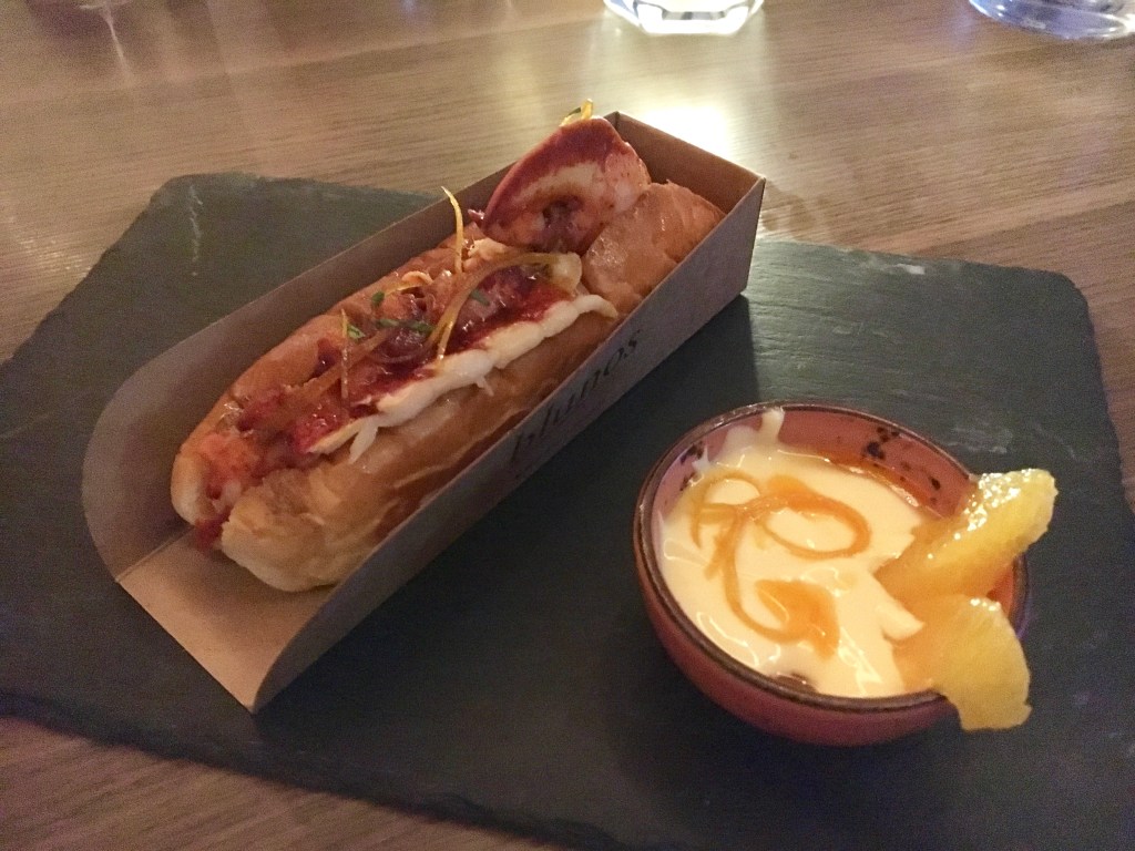 🦞 Lobster Roll Half 630 บาท เป็นกุ้ง Canadian lobster ครึ่งตัวอบเนยและ shellfish oil แล้วเอาไปใส่ขนมปัง hotdog ตัวกุ้งทานคู่กับ orange mayonaise จานนี้อร่อยดี กุ้งเนื้อนุ่มชิ้นใหญ่ ความเห็นส่วนตัว รสชาติพอๆ กับร้านอื่นๆ นะ จานนี้เป็นเมนูแนะนำ ลองสั่งดูละกัน