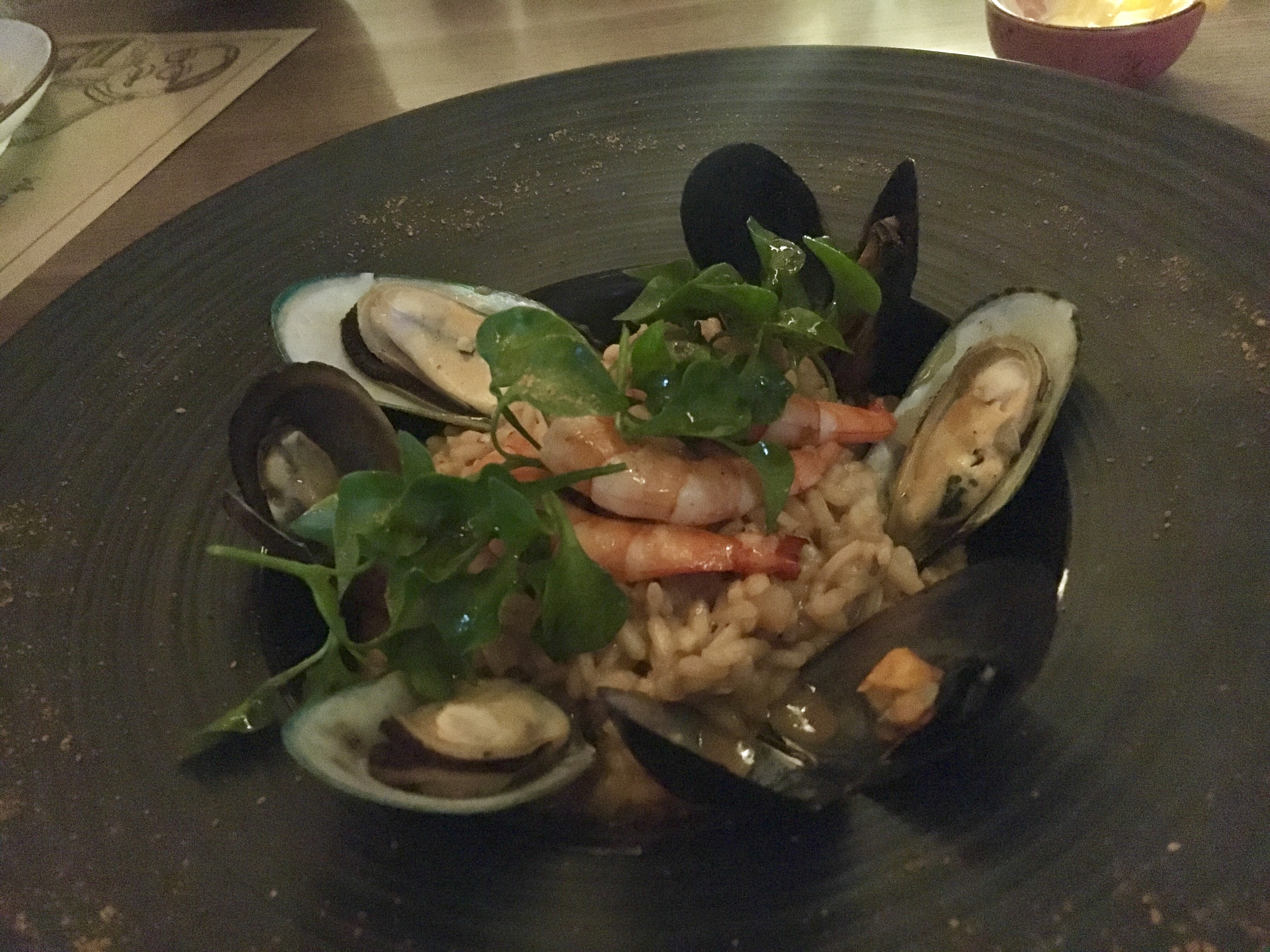 🍚 Shellfish Risotto 460 บาท เป็นริซอตโต้ใส่น้ำสต๊อกกุ้งล็อบสเตอร์ แล้วใส่หอยแครงลงไป ข้าวริซอตโต้แข็งๆ น้ำซอสไม่ค่อยนัว ไม่เข้มข้น ออกจืดๆ ส่วนหอยก็โอเค ไม่ได้มีรสชาติมาก