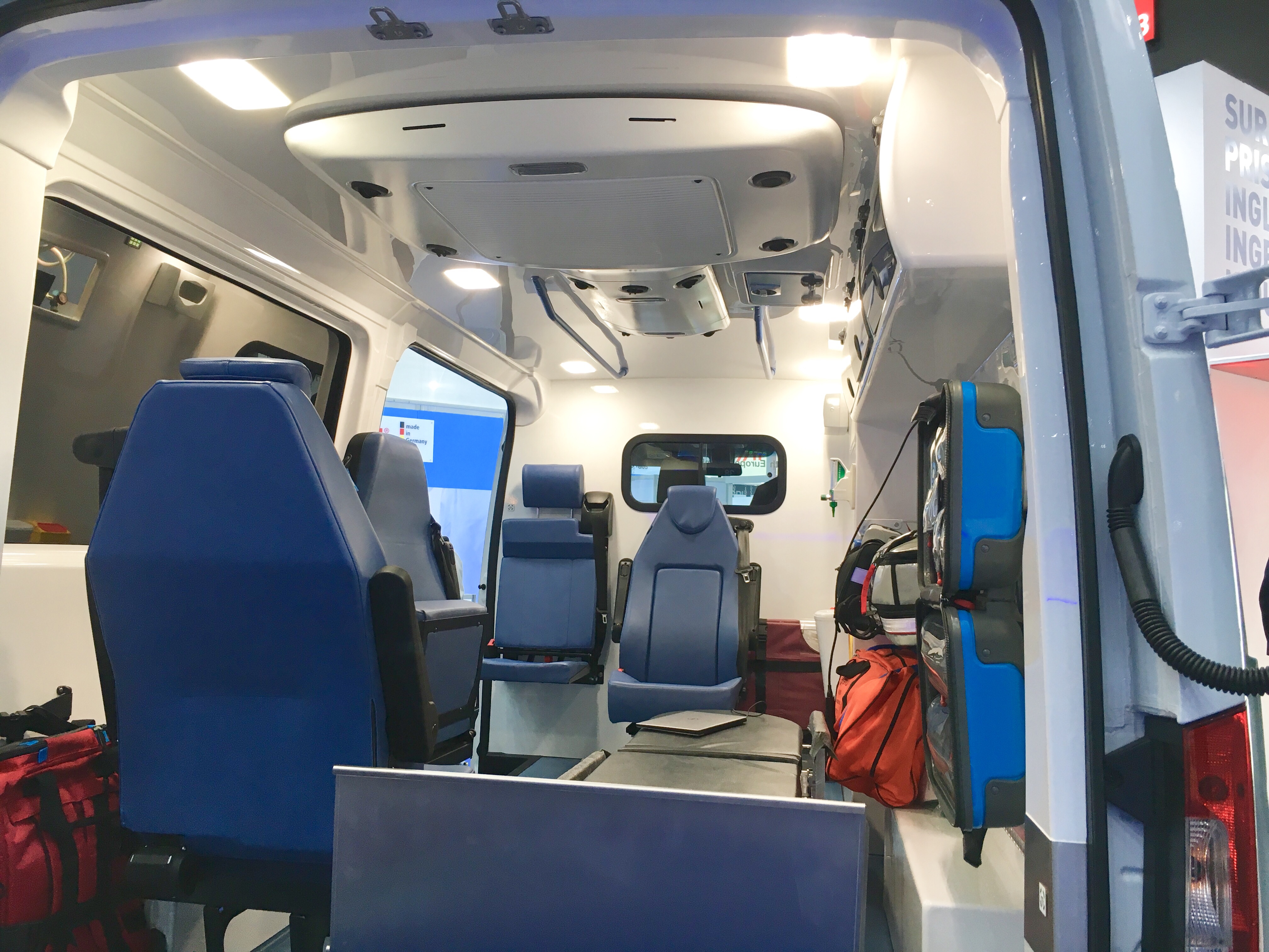 🚑 รถ Ambulance ของ Dlouhy partner by Mercedes Benz ที่ทำมาเพื่อคอนเซปต์ Safety Ambulance มีการดีไซน์รถให้มีโครงที่แข็งแกร่ง ผ่านมาตรฐาน มีความปลอดภัยสำหรับผู้ปฏิบัติการ ทุกที่นั่งจะมี safety belt เก้าอี้และอุปกรณ์จะยึดเข้ากับโครงรถ โดยในกรณีที่เกิดอุบัติเหตุ ของพวกนี้จะได้ไม่หลุดออกไป เก้าอี้ปรับหมุนไปด้านข้างได้