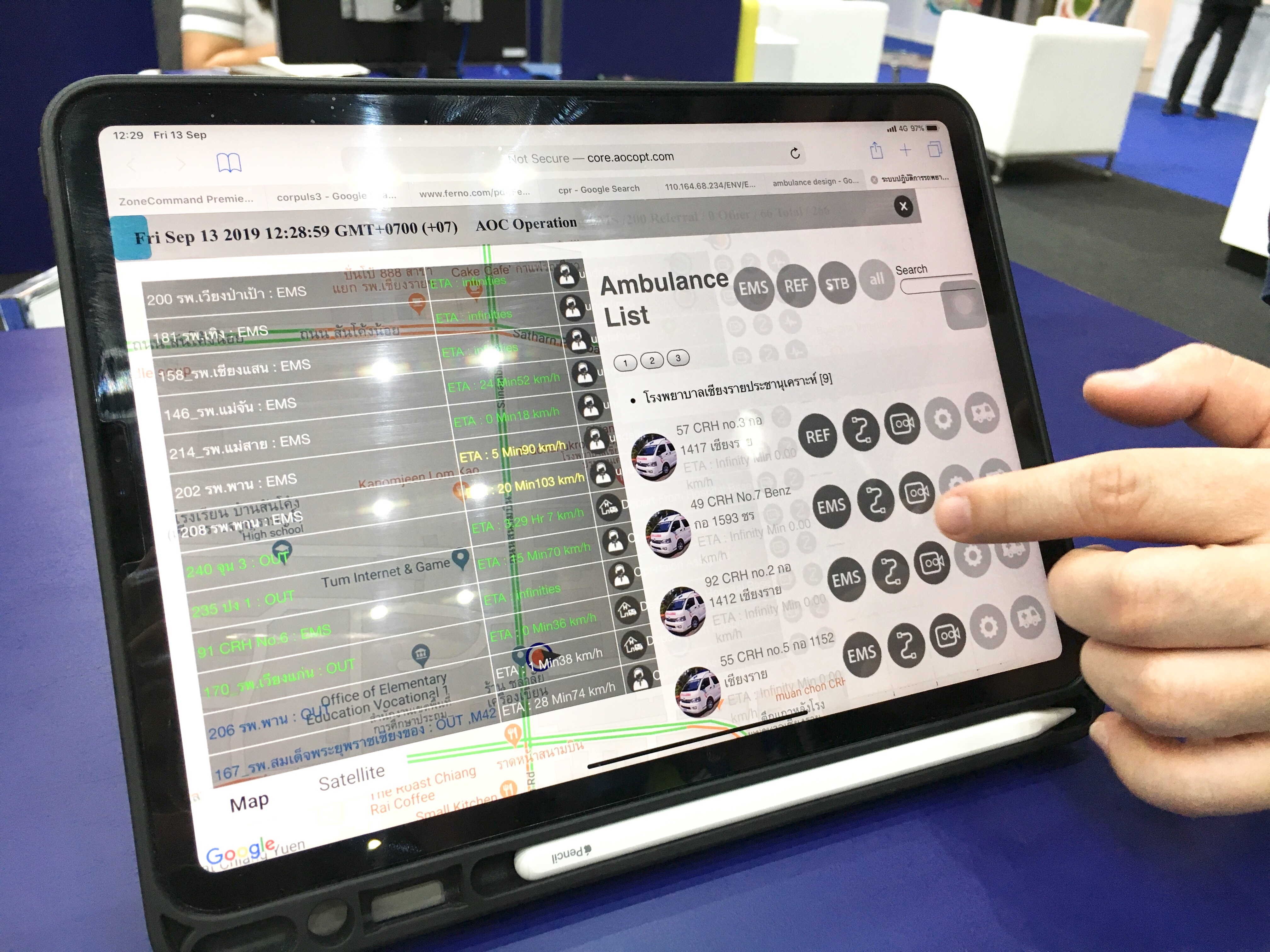📱 Application ของ TELY360 มีการติดตั้ง GPS monitor V/S + EKG กล้องและไมโครโฟนบนรถ ทำให้ศูนย์สั่งการและคนที่ออกเหตุสามารถติดต่อกันได้ตลอดเวลา นอกจากนี้ ศูนย์สั่งการจะเห็นสถานการณ์ของรถทั้งหมดว่าขณะนี้อยู่ที่ไหน กำลังขับด้วยความเร็วกี่ km/hr การกระจายตัวของรถแอมเป็นอย่างไร เป็นต้น ซึ่งสามารถนำ application นี้ไปใช้ได้กับทั้ง EMS และ inter-facility transportation (refer) แพทย์อำนวยการสามารถ monitor คนไข้จากทาง application แทนการนั่งอยู่ที่ศูนย์สั่งการตลอดเวลา