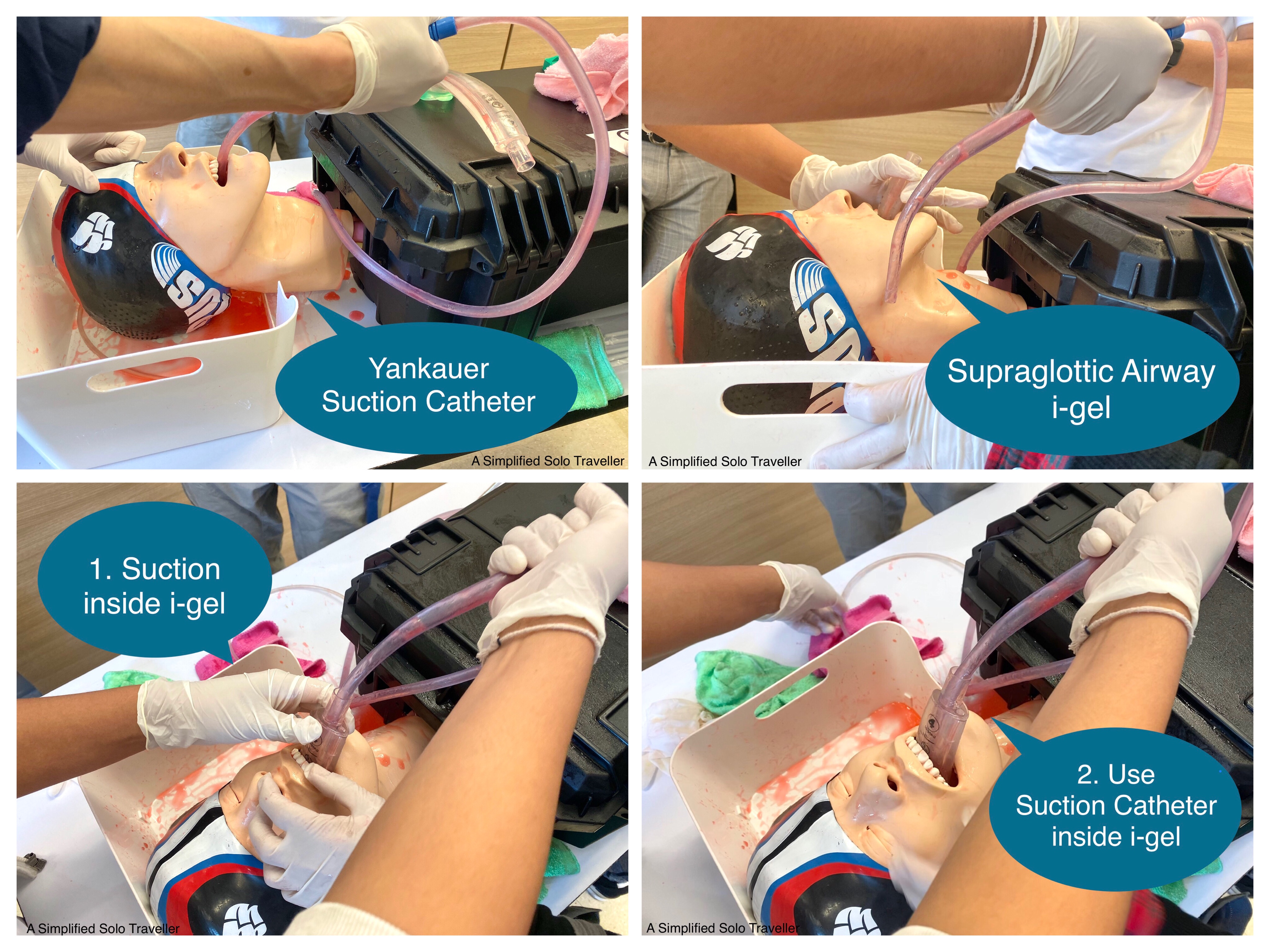 ⁃ ใส่ Supraglottic Airway ยี่ห้อ i-gel แล้ว Suction ด้วย Yankauer Tip ด้านใน i-gel แล้วค่อยใช้ Tracheal Suction ด้านล่าง i-gel