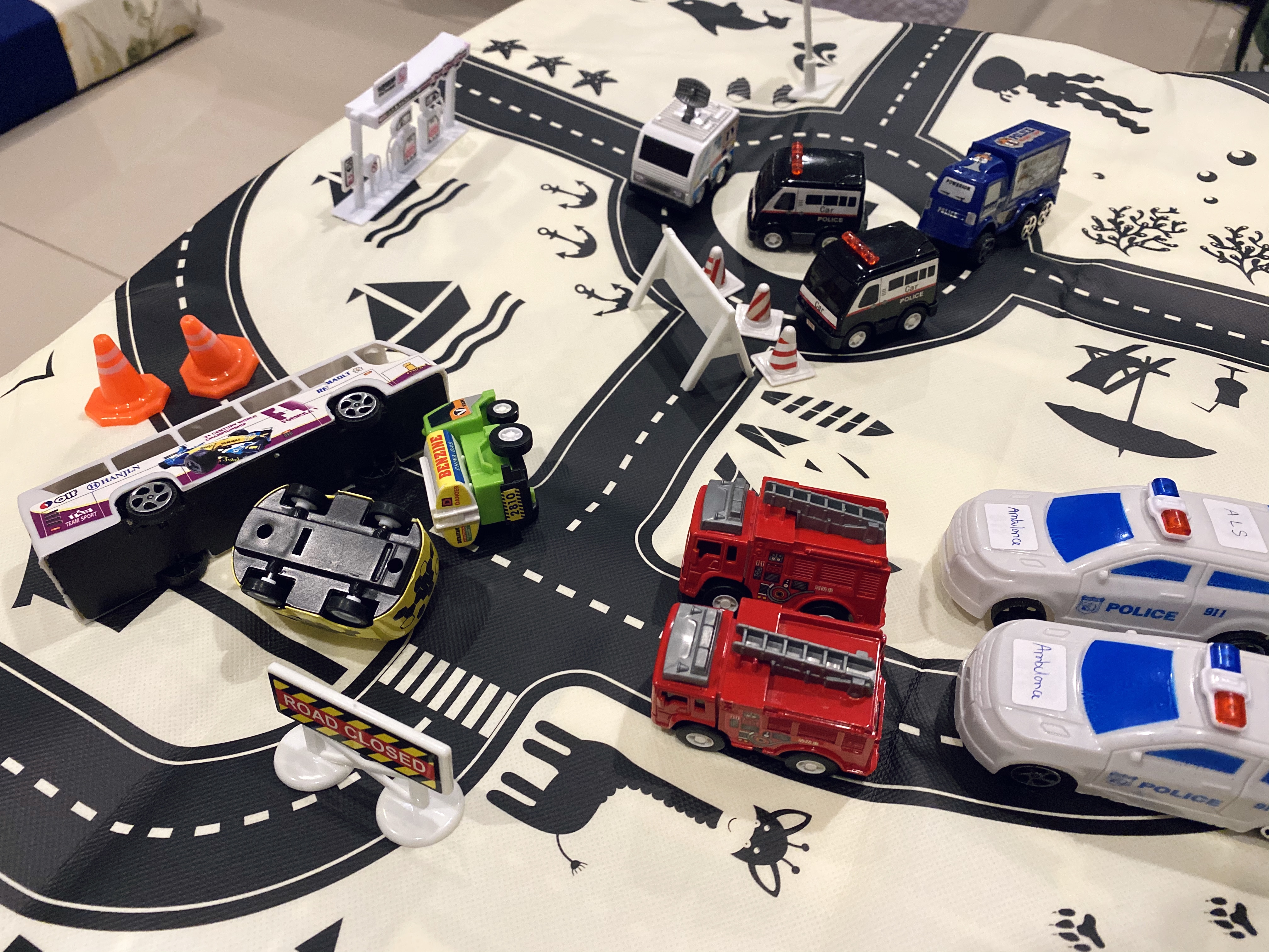 📌 แผนที่ขนาดใหญ่ที่มีเส้นแบ่งการจราจรและตึก แผ่นที่ใช้อยู่ราคา 450 บาท (ขายพร้อมรถและสัญญาณจราจรด้วย) ถ้าไม่สะดวก สามารถปริ๊นแผนที่ใน Google Maps มาใช้แทนได้เหมือนกัน