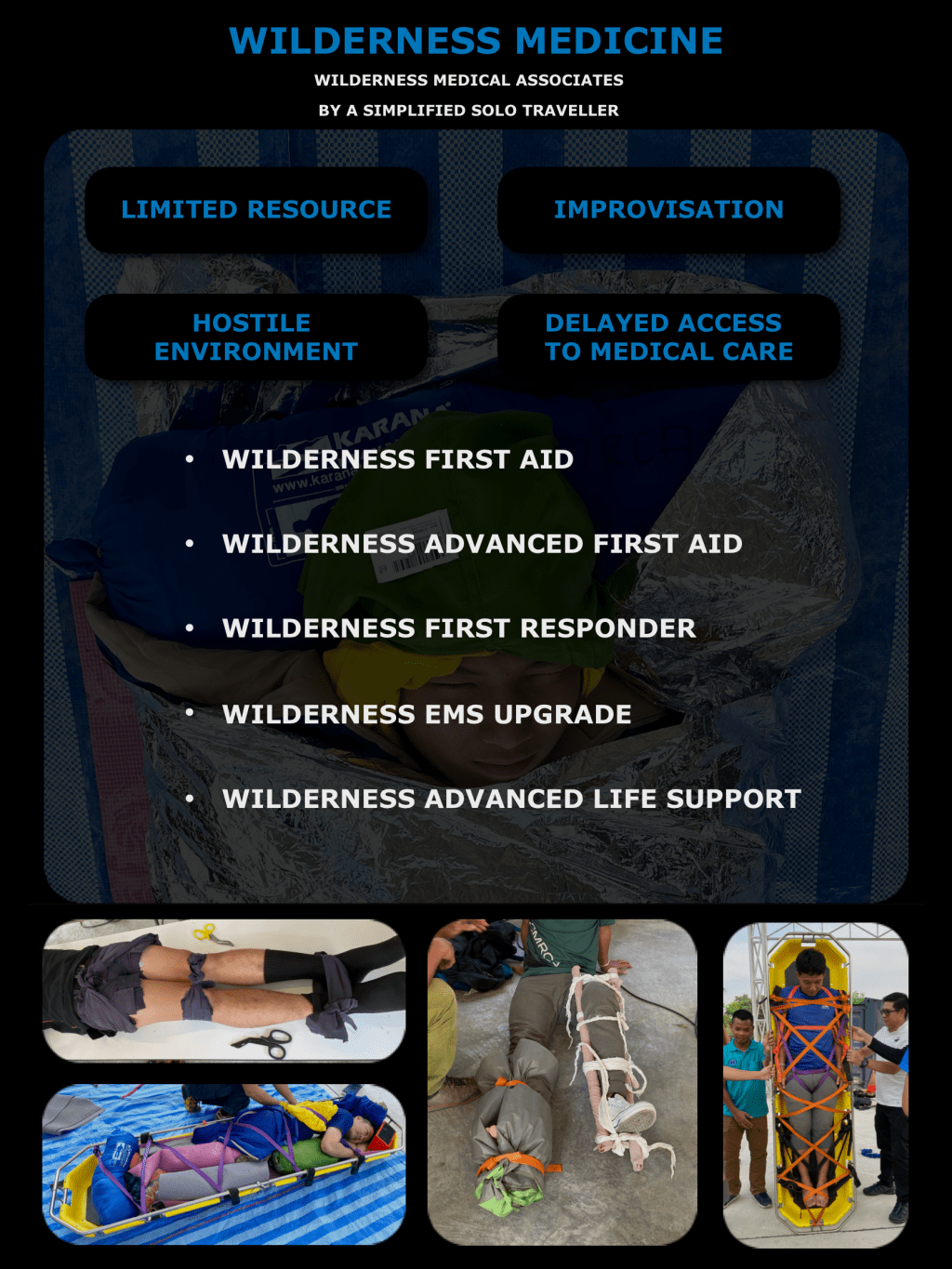 ❤️ Wilderness Mediciness คือการดูแลรักษาผู้ป่วยในที่ๆ กันดารและห่างไกล (Hostile Environment) มีทรัพยากรที่จำกัด (Limited Resource) มีความจำเป็นต้องประยุกต์สิ่งที่มีอยู่มาทำเป็นอุปกรณ์ทางการแพทย์ (Improvisation) และใช้ระยะเวลานานในการเคลื่อนย้ายผู้บาดเจ็บไปสู่การรักษา (Delayed Access to Medical Care) เป็นส่วนหนึ่งของการเรียนต่อ Fellowship ของ Emergency Medicine