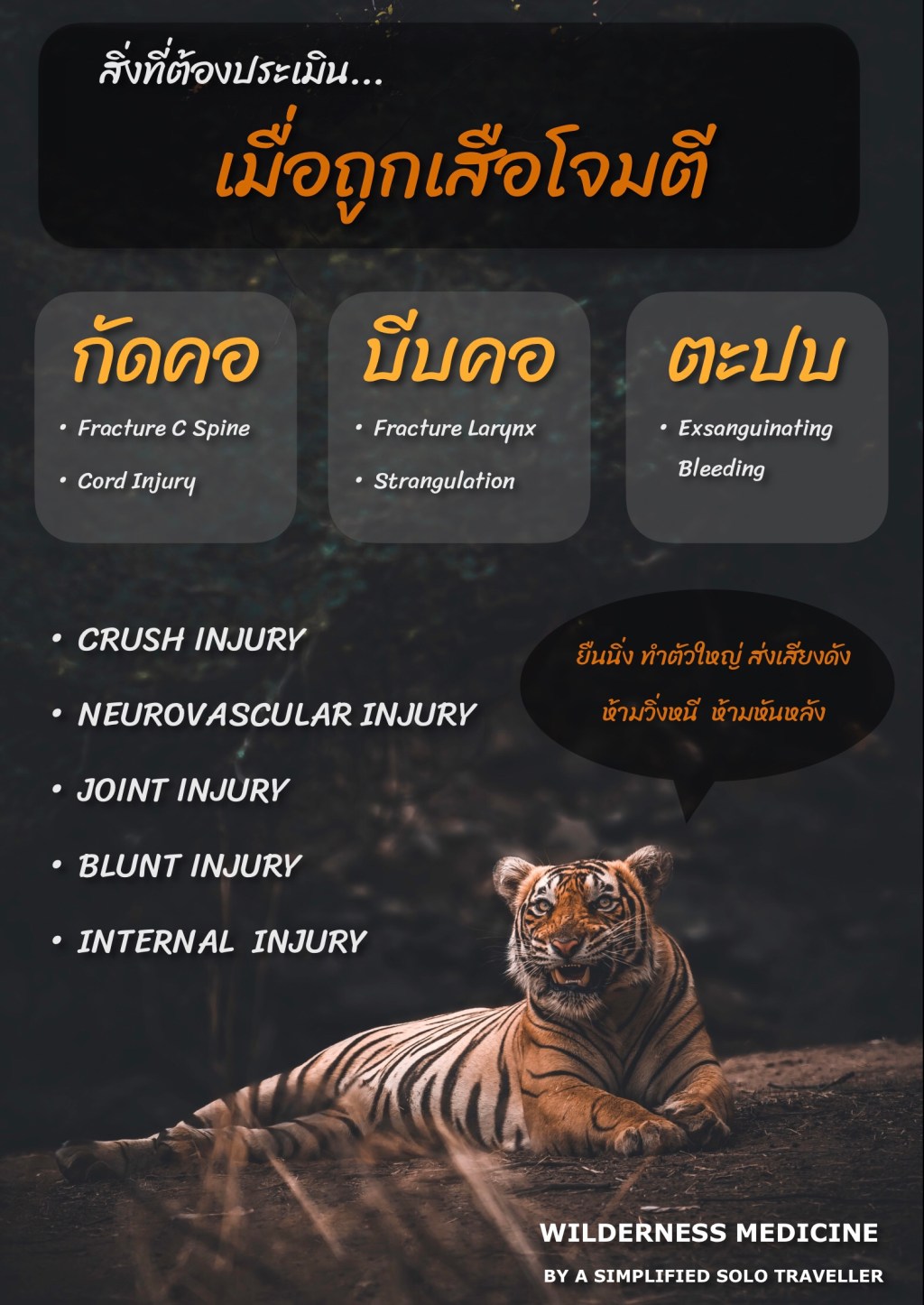 ⚠️ ระวัง Blunt Trauma และ Internal Injury ร่วม ฉีด Tetanus + Rabies Vaccination +- Immuno globulin ด้วย