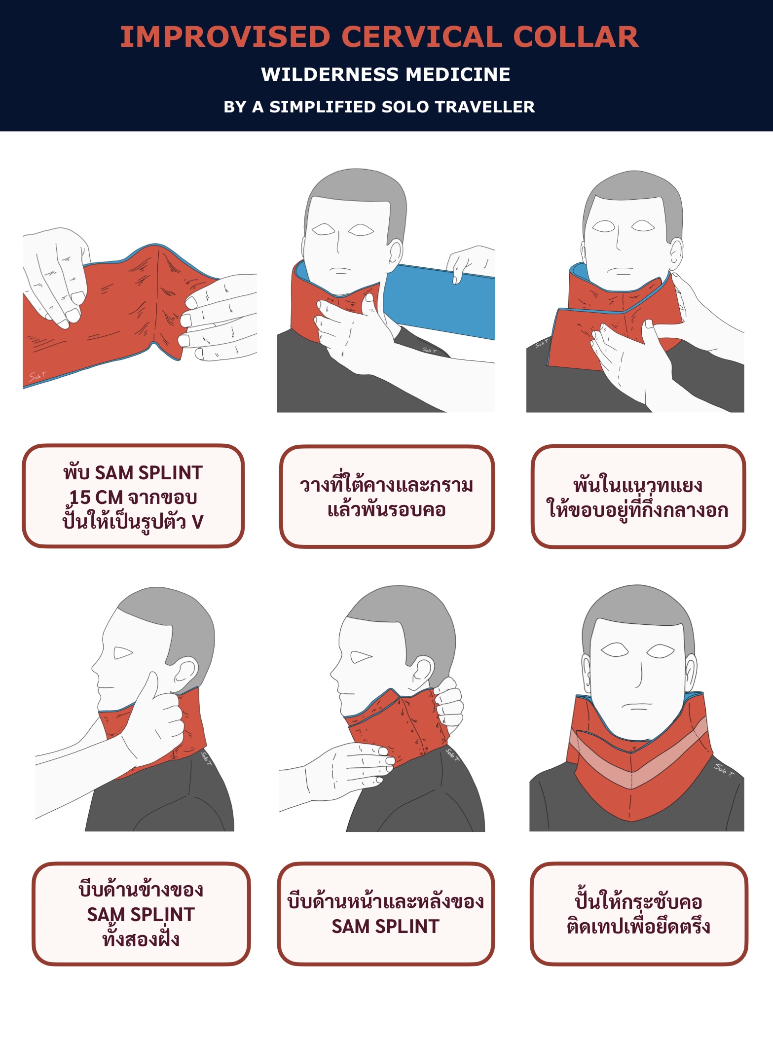 😱 ทำไงดี คนไข้ตกจากเหวลึก ปวดต้นคอ ขยับแขนและขาไม่ได้เลย ลืมหยิบ Hard Collar มา แต่ต้องเคลื่อนย้ายคนไข้แล้ว !? ก็ทำเฝือกดามคอประยุกต์จาก SAM Splint ได้นะ