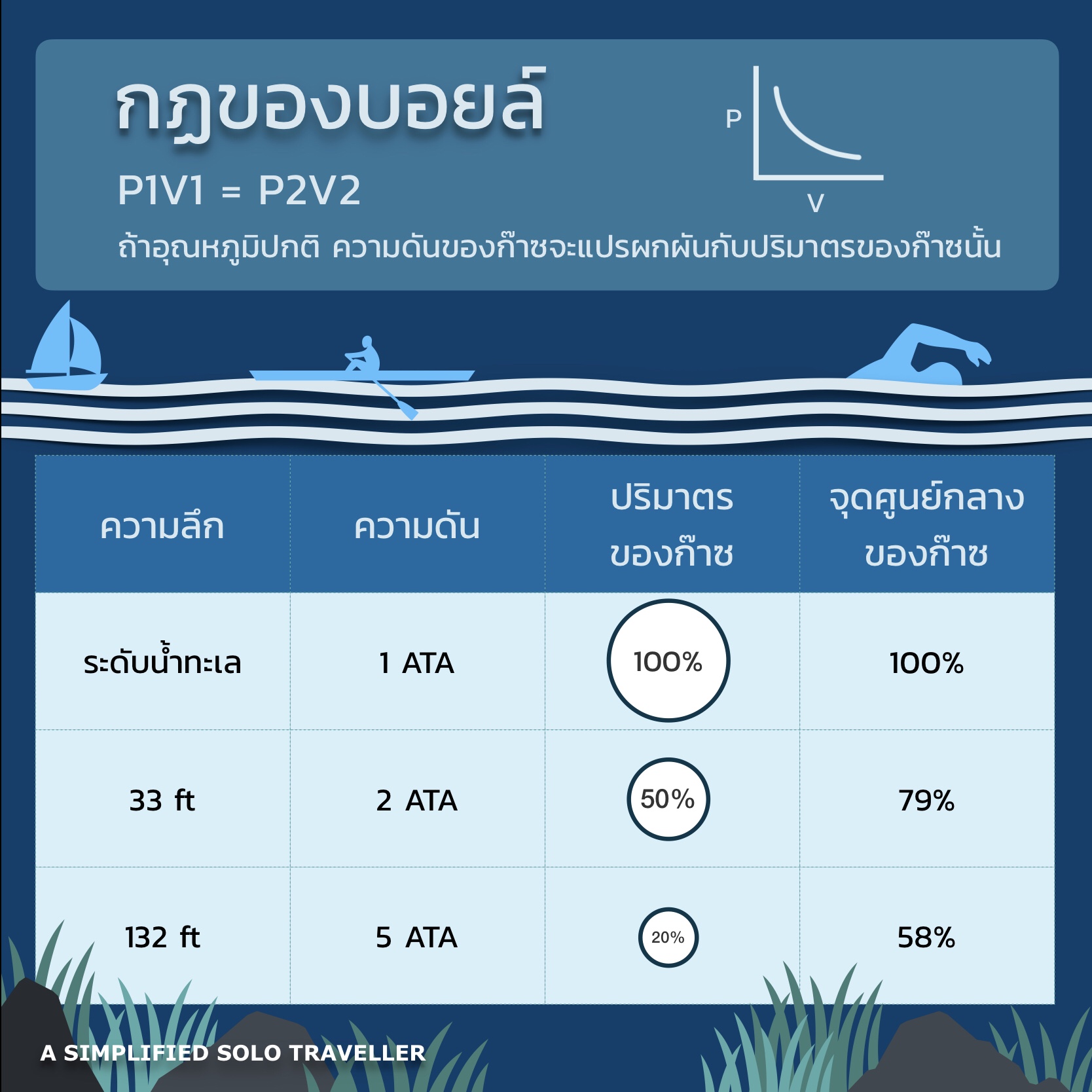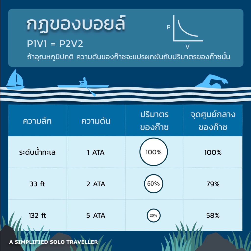 ❗️ปัญหามักเกิดถ้าดำขึ้นเร็วเกินไป ก๊าซจะขยายตัวอย่างรวดเร็ว นอกจากนี้ การดำน้ำตื้นมีความเสี่ยงสูง เพราะปริมาตรจะเปลี่ยนแปลงมากสุดในความลึกนี้