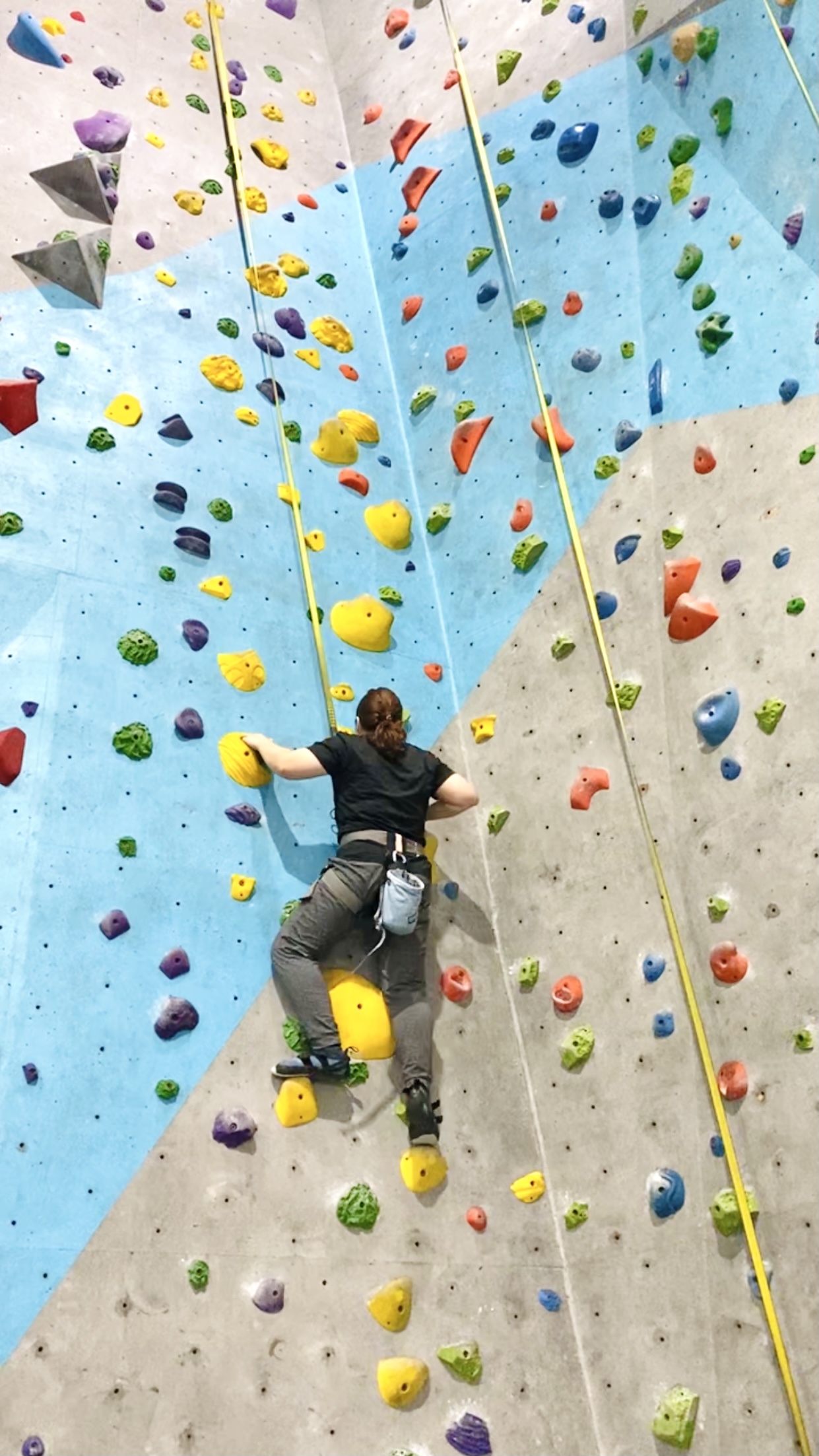 ⛰ ปีนหน้าผาจำลองคนเดียวครั้งแรกในชีวิต มันก็จะกลัวๆ หน่อย กลัวจะตก กลัวแขนขาไม่มีแรงที่จะดันตัวขึ้น กลัวว่าจะปีนไม่ไหวแล้วจะถอดใจไปก่อน ในวิดิโอที่ถ่ายมา ใช้เวลาปีนจริงทั้งหมด 12 นาทีครึ่ง ร่วงทั้งหมด 5 ครั้ง เกือบจะถอดใจแล้ว แขนล้า ดันตัวไม่ไหว หาทางไปต่อยาก ไม่รู้จะวางขาที่ไหน ไม่รู้จะจับหินก้อนไหนต่อ ปีนจนตกไป 5 รอบ ใจนึงก็คิดว่าจะหยุดแล้วโรยตัวลงดีมั้ย แต่ไม่ ! แรงยังเหลือ ก็ต้องพยายามให้สุด
