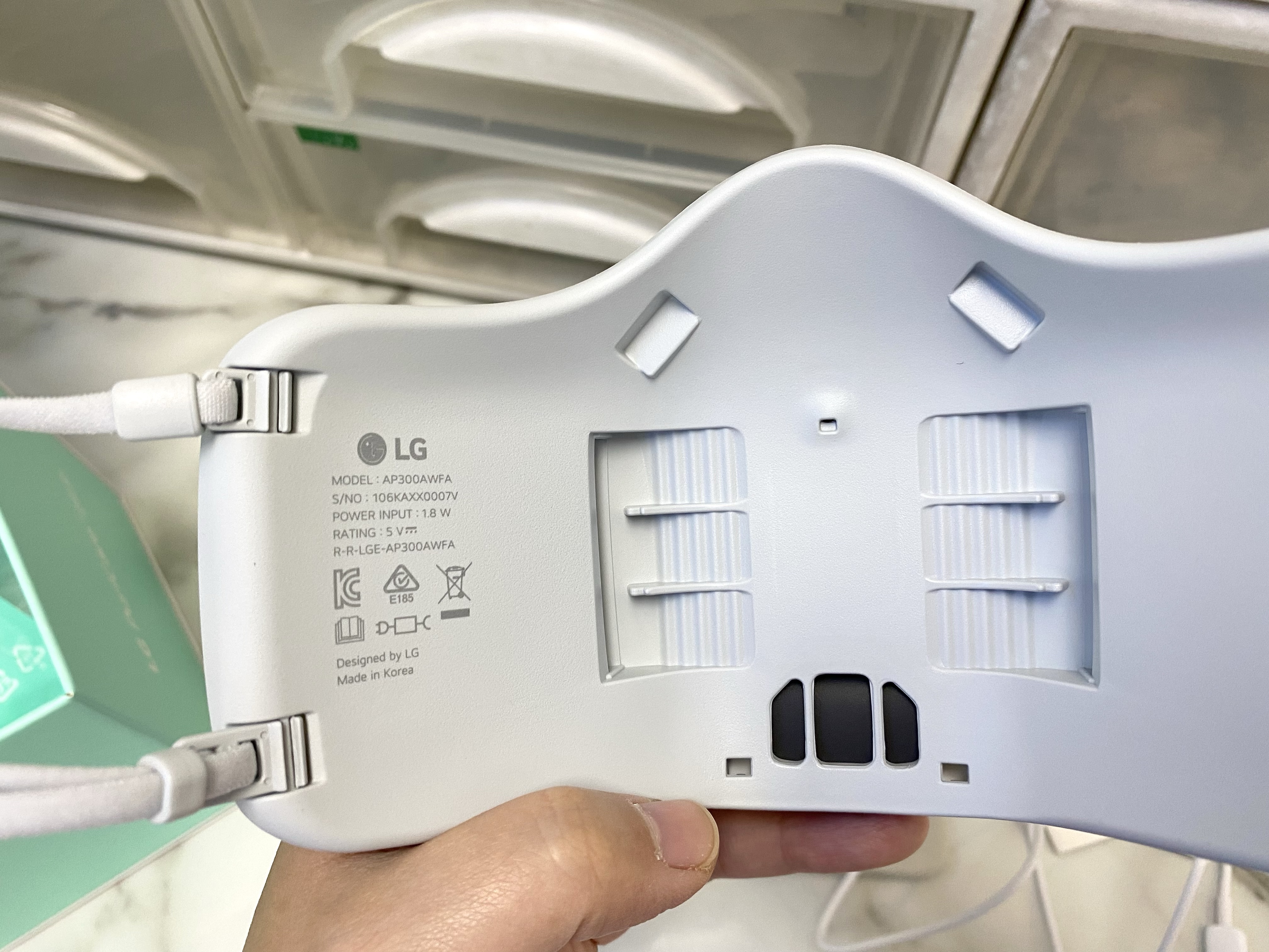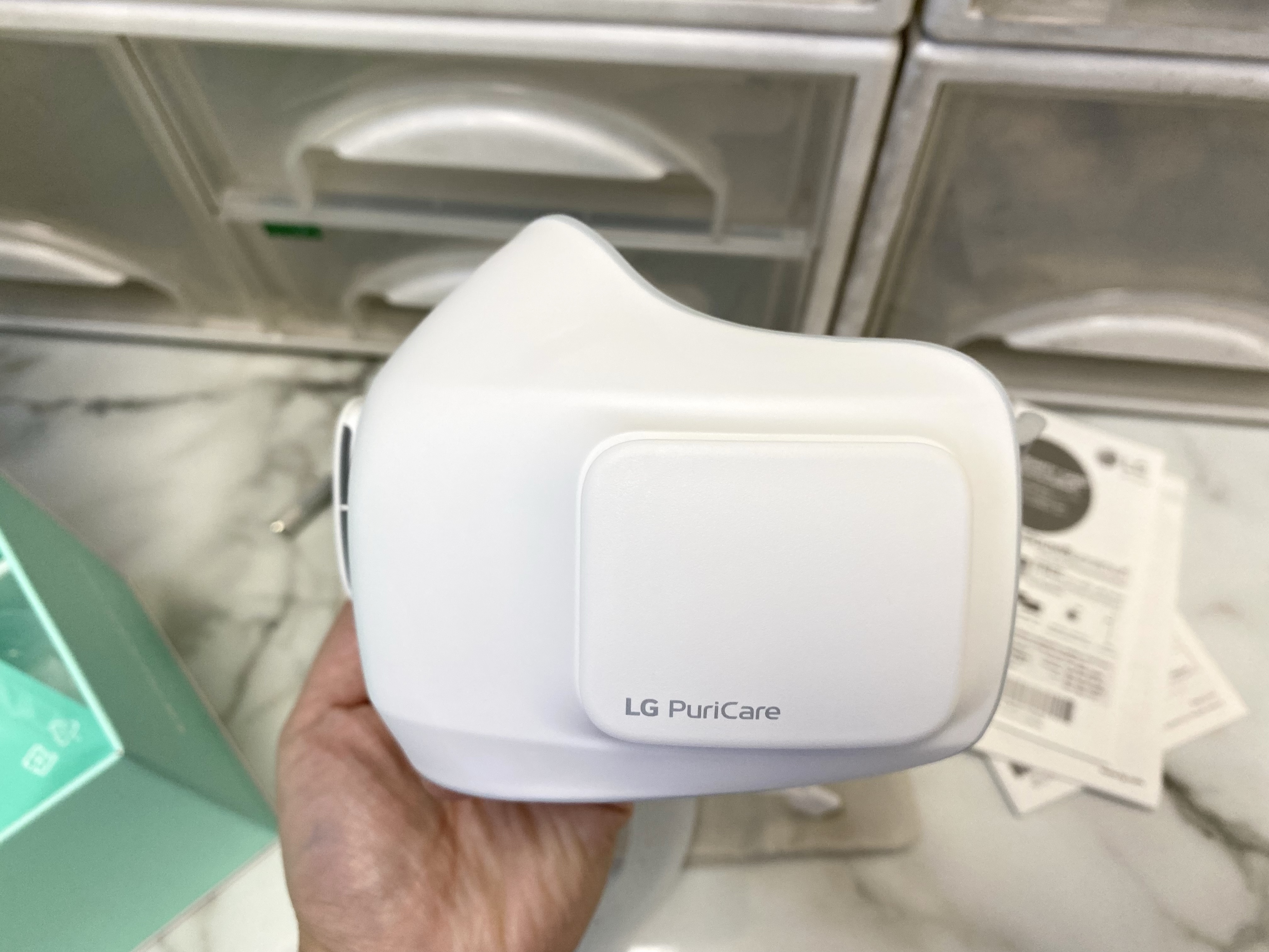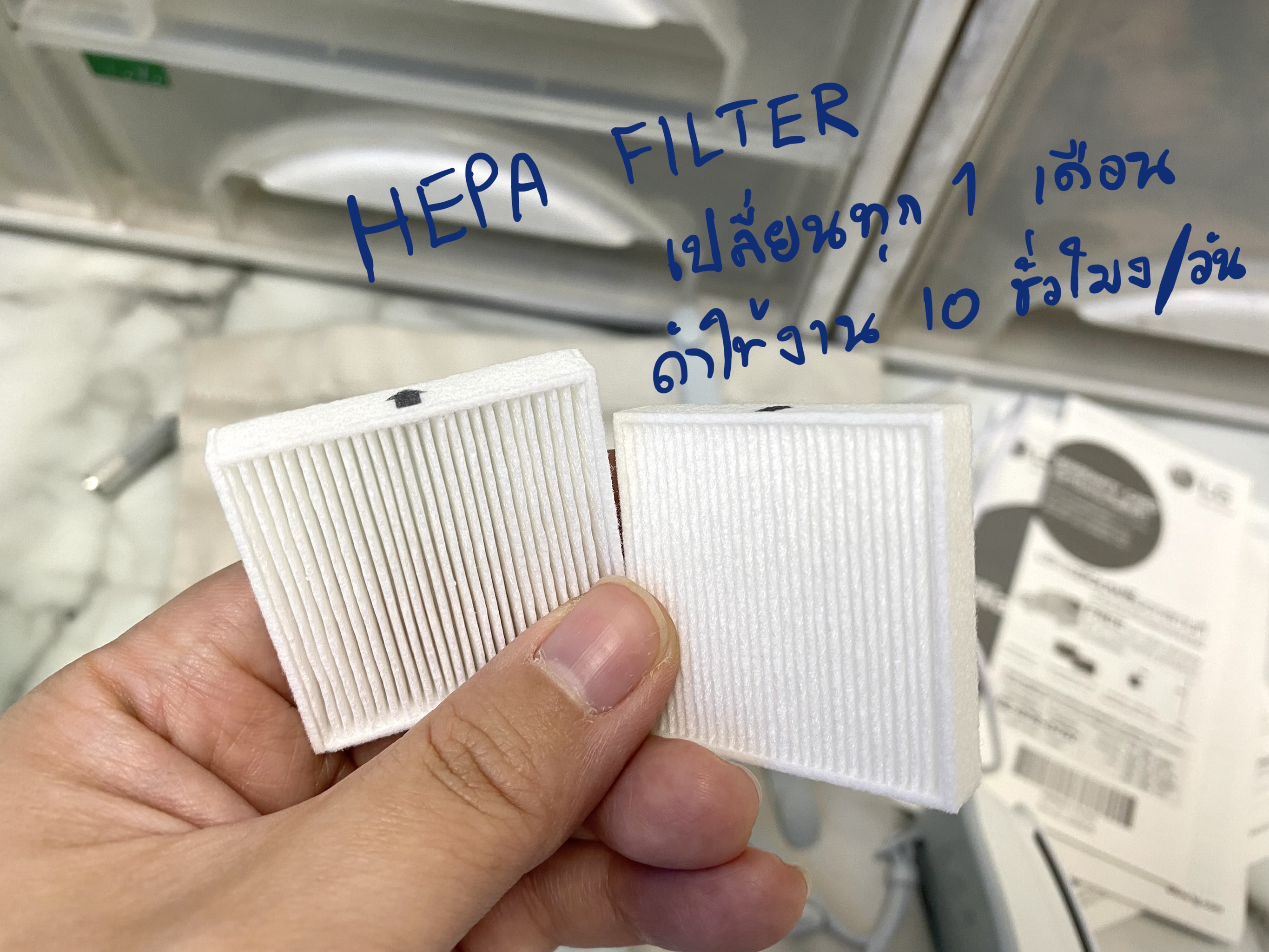 🦠 หน้ากากฟอกอากาศ มีแผ่นกรอง HEPA Filter H13 Class คุณภาพสูง ดักจับอนุภาคเล็กได้ 99.95% มีพัดลมมอเตอร์อัดลมทำให้หายใจสะดวกขึ้น พัดลมมี 3 ระดับที่ 20-60 LPM เครื่องจะมีเซ็นเซอร์จับจังหวะการหายใจเข้าออก เคลมว่ากรองฝุ่นเล็กถึง PM 1.0 และมีอัตรารั่วของอากาศต่ำกว่า 10% (KF94) แบตเตอร์รี่ใช้ได้มากสุด 8 ชั่วโมง ใช้เวลาชาร์จ 2 ชั่วโมง เครื่องหนัก 126 กรัม