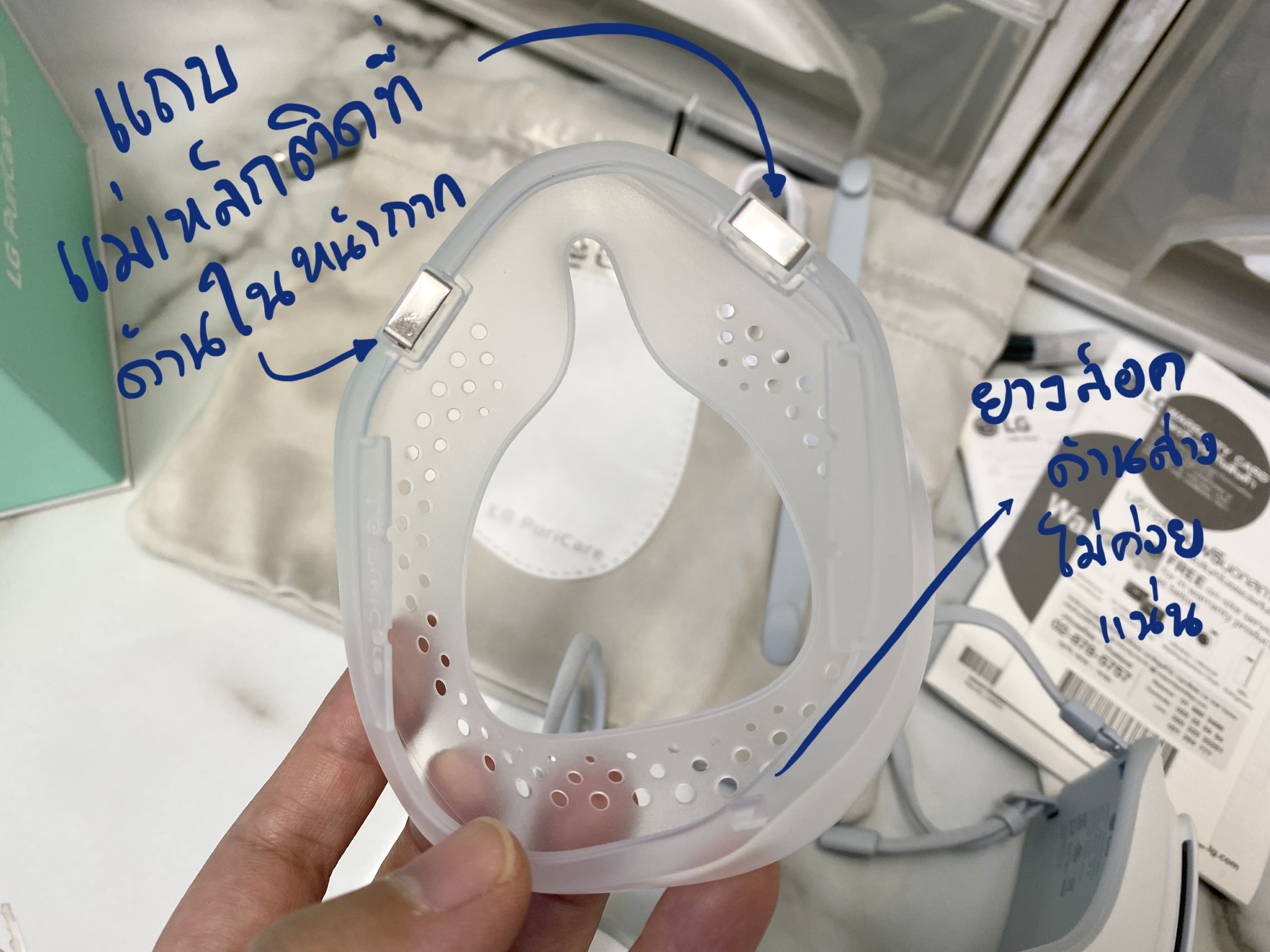 👉🏻 หน้ากากไม่ถูกกับความชื้นและเหงื่อ ถ้าเปียกควรเช็ดให้แห้ง ไม่แนะนำใส่ในที่ๆ ร้อนเหงื่อแตกมาก เดี๋ยวระบบไฟฟ้ารวน