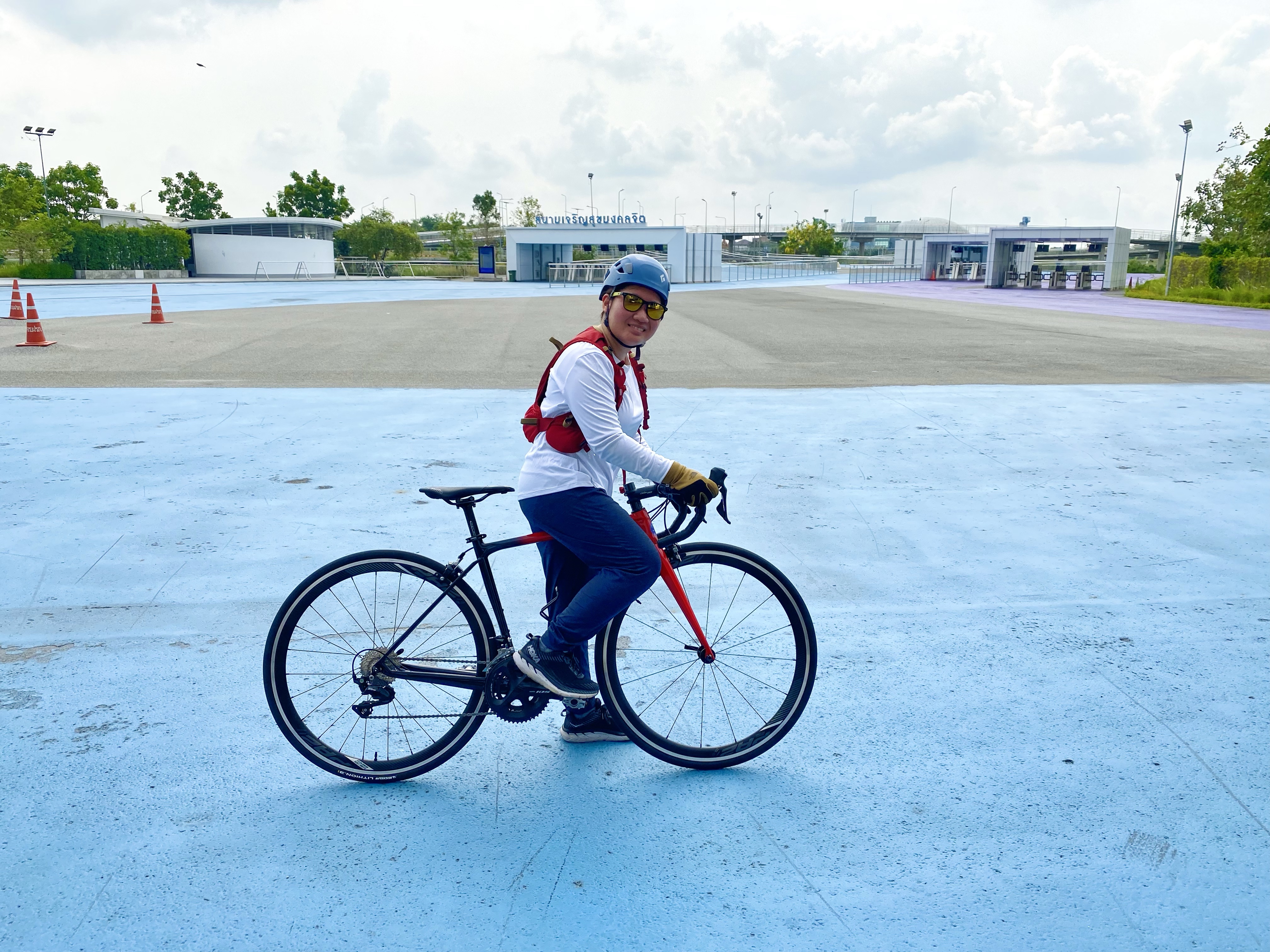 🥤 สนามไม่อนุญาตให้พกน้ำขวดเข้าไป ยกเว้นจะใส่ตัวล็อคขวดน้ำสำหรับจักรยาน ขวดอาจจะตกหล่นกลางทาง เป็นอันตรายต่อคนที่ปั่นมาด้านหลัง ดังนั้นแอดเลยสะพายเป้น้ำไปแทน