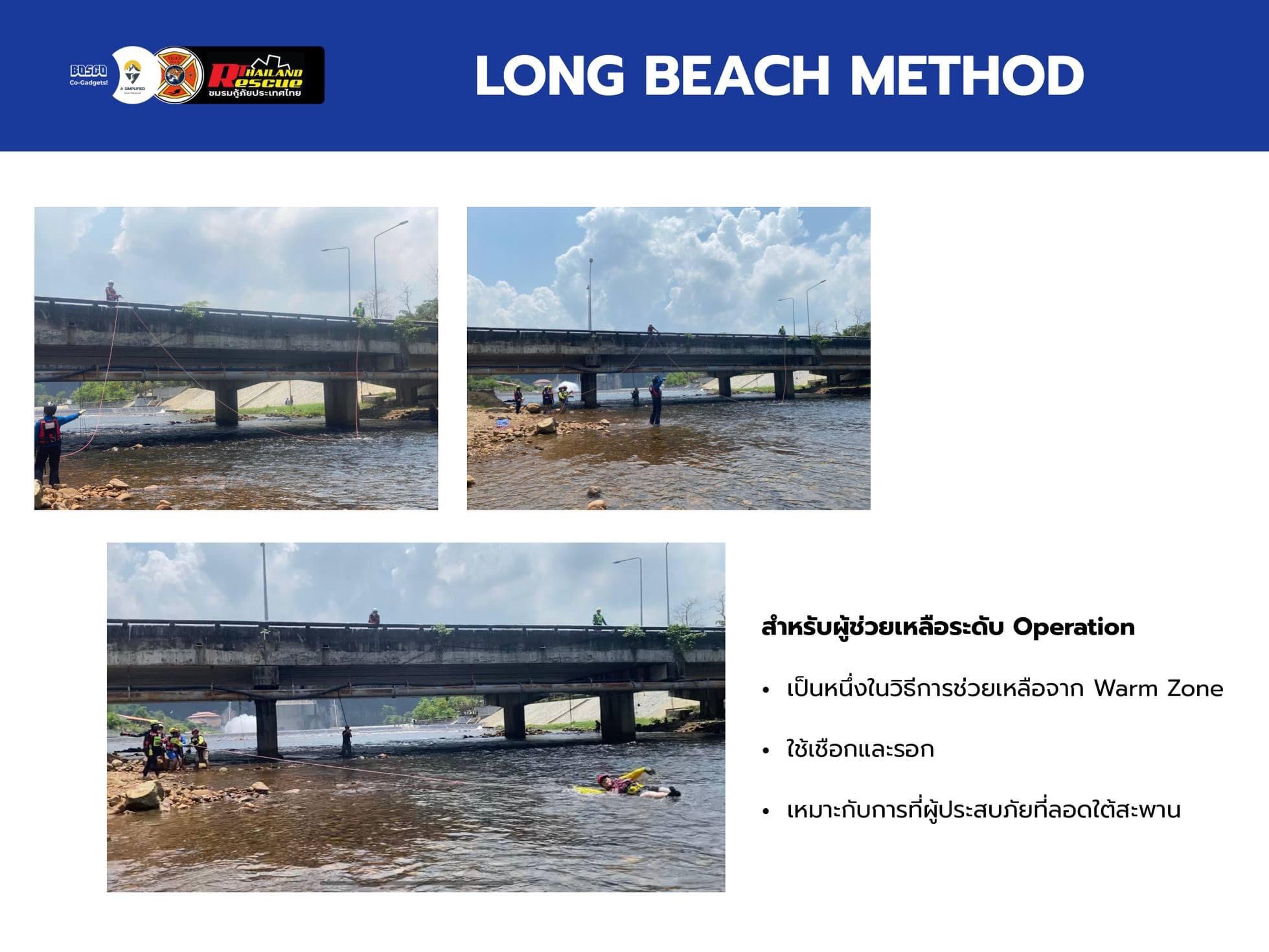 🔹 การใช้ระบบเชือกช่วยเหลือผู้ประสบภัยใต้สะพาน Long Beach Method