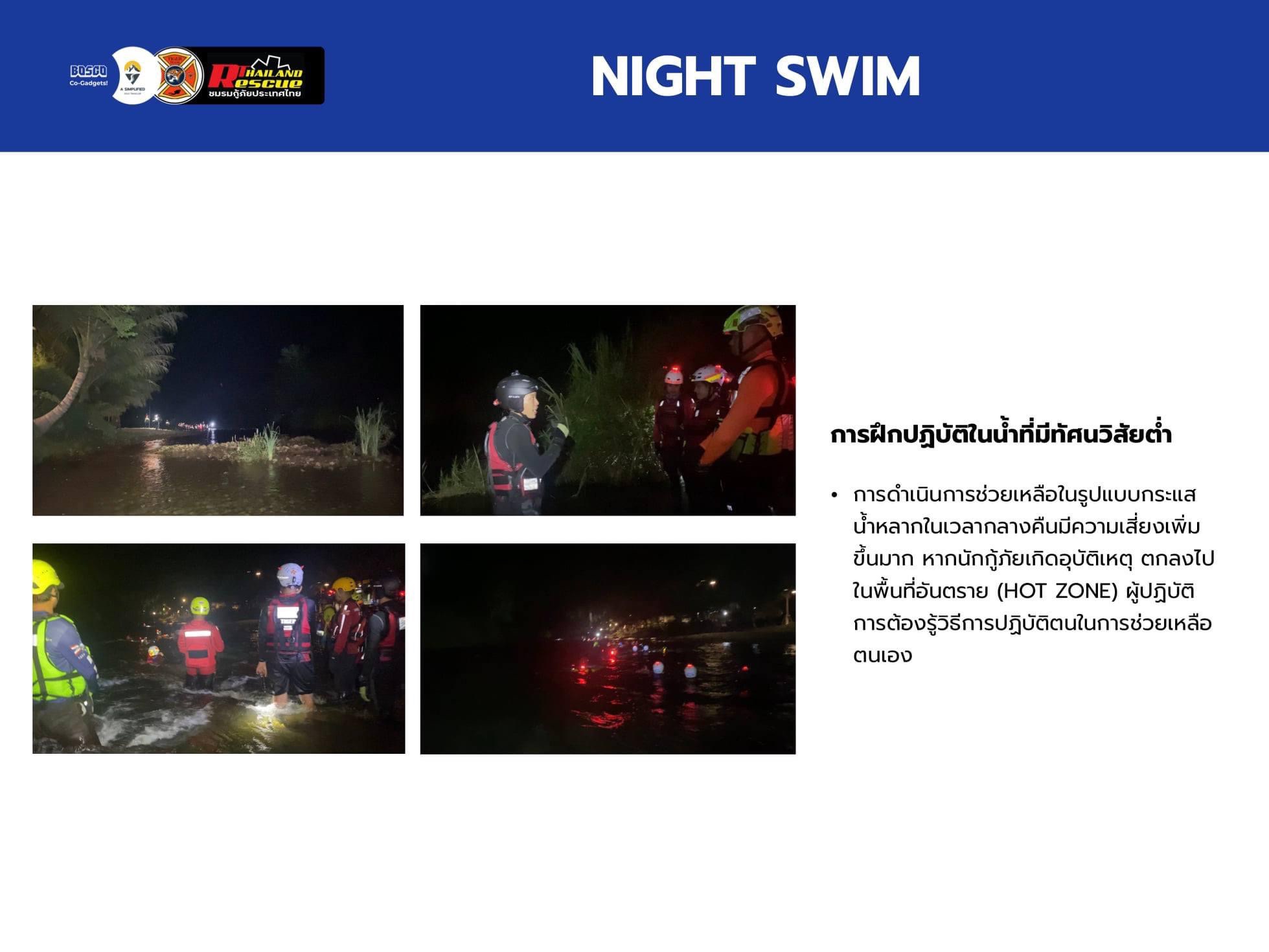 🔹 การฝึกปฏิบัติในน้ำที่มีทัศนวิสัยต่ำ Night Swim