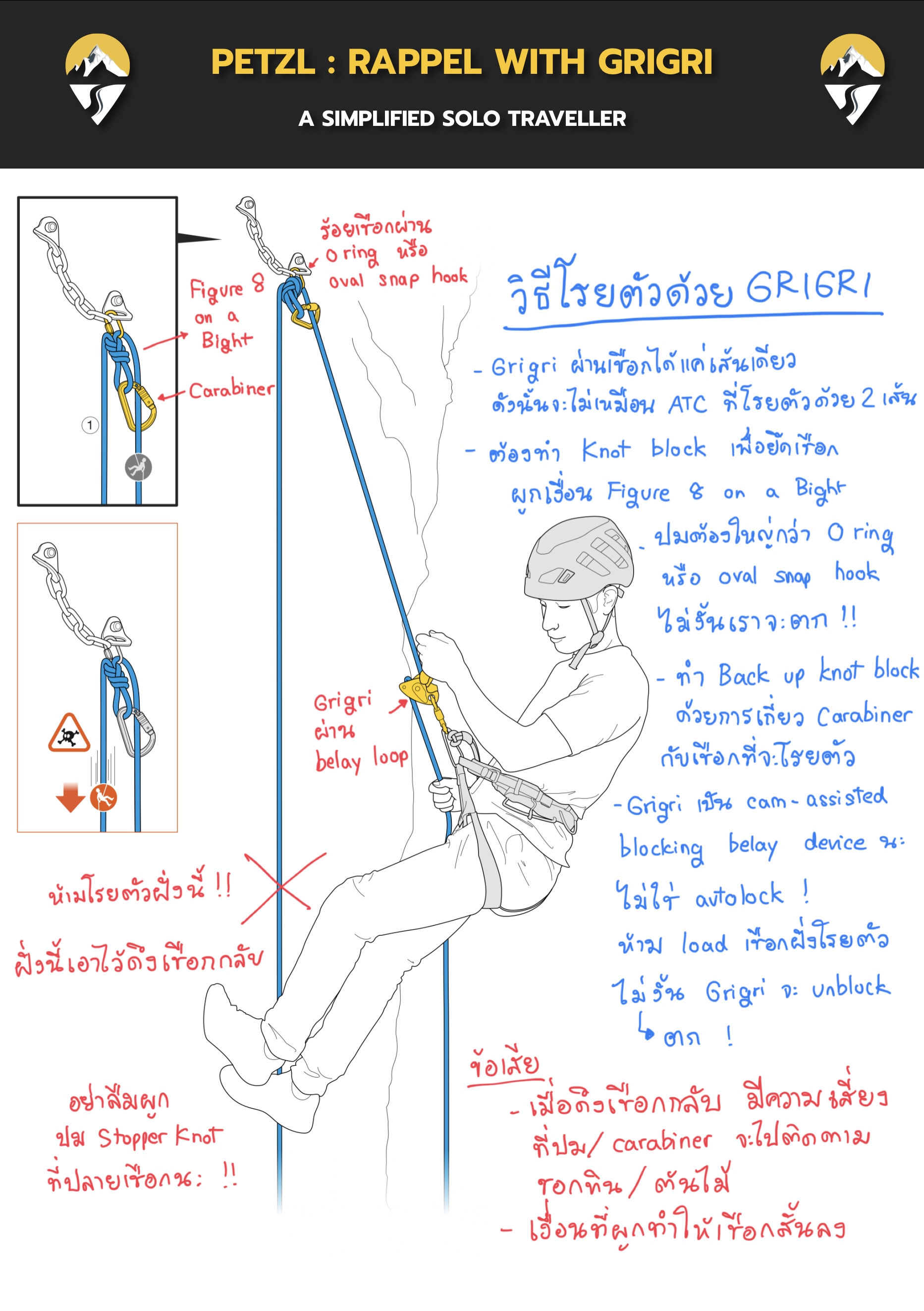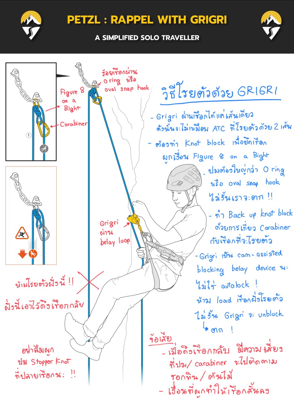 ⚠️ นอกจากนี้ Grigri เป็น cam assisted blocking belay device นะ ไม่ใช่ autoblock มีโอกาสเกิดอุบัติเหตุโดยที่ Grigri ไม่ล็อคได้ ไปอ่านคู่มือการใช้งานในเว็บ Petzl เพิ่มได้ค่ะ