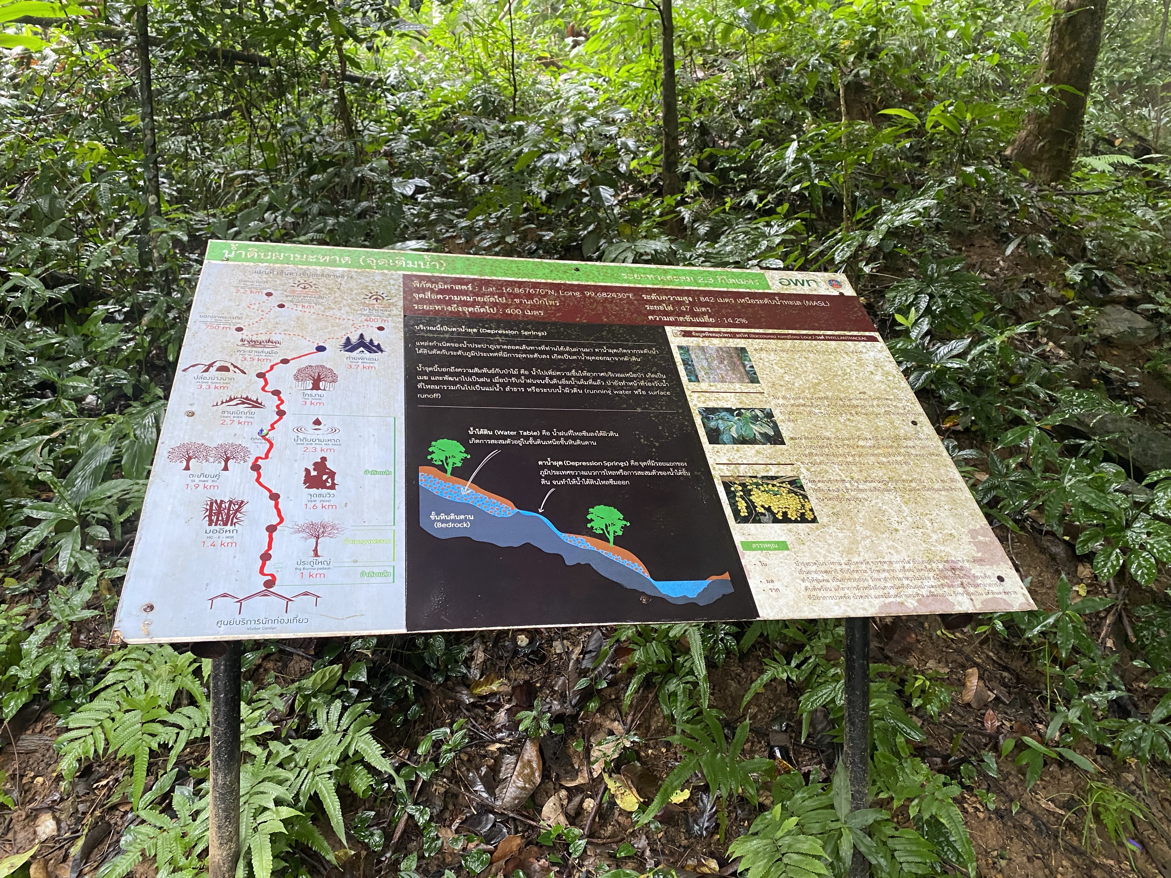 💦 ควรแบกน้ำไปอย่างน้อย 2 ลิตร เพราะไม่มีร้านค้าระหว่างทาง มีน้ำดื่ม 2 จุด อยู่ในถังที่ต้องกรองเอง