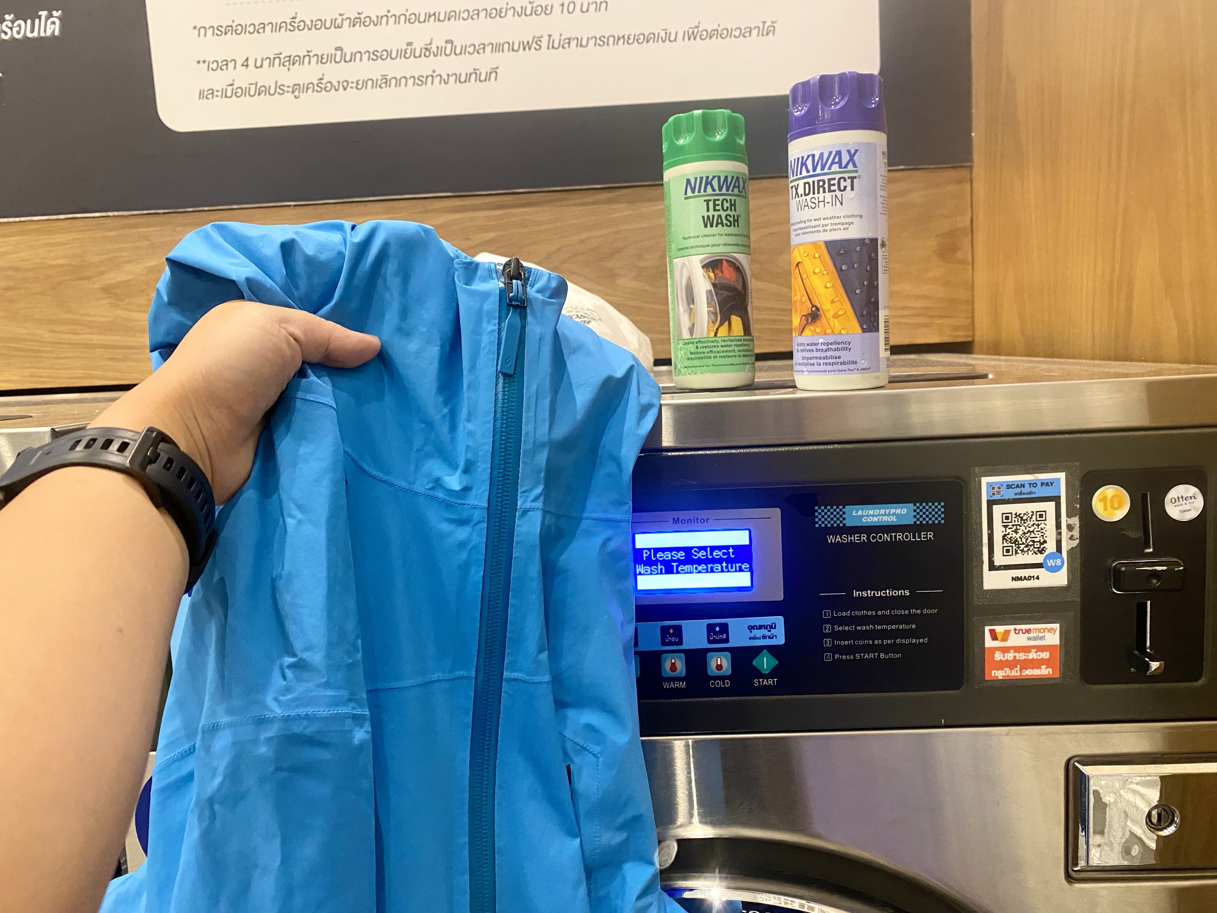 🔹 ถ้าซักเสื้อกันฝน (Waterproof jacket) จะต้องใช้น้ำยาพิเศษในการเคลือบคุณสมบัติ “กันน้ำ” โดยปกติ เราจะไม่ค่อยซักเสื้อกันฝนเลย ยกเว้นจะเลอะและจำเป็นจริงๆ