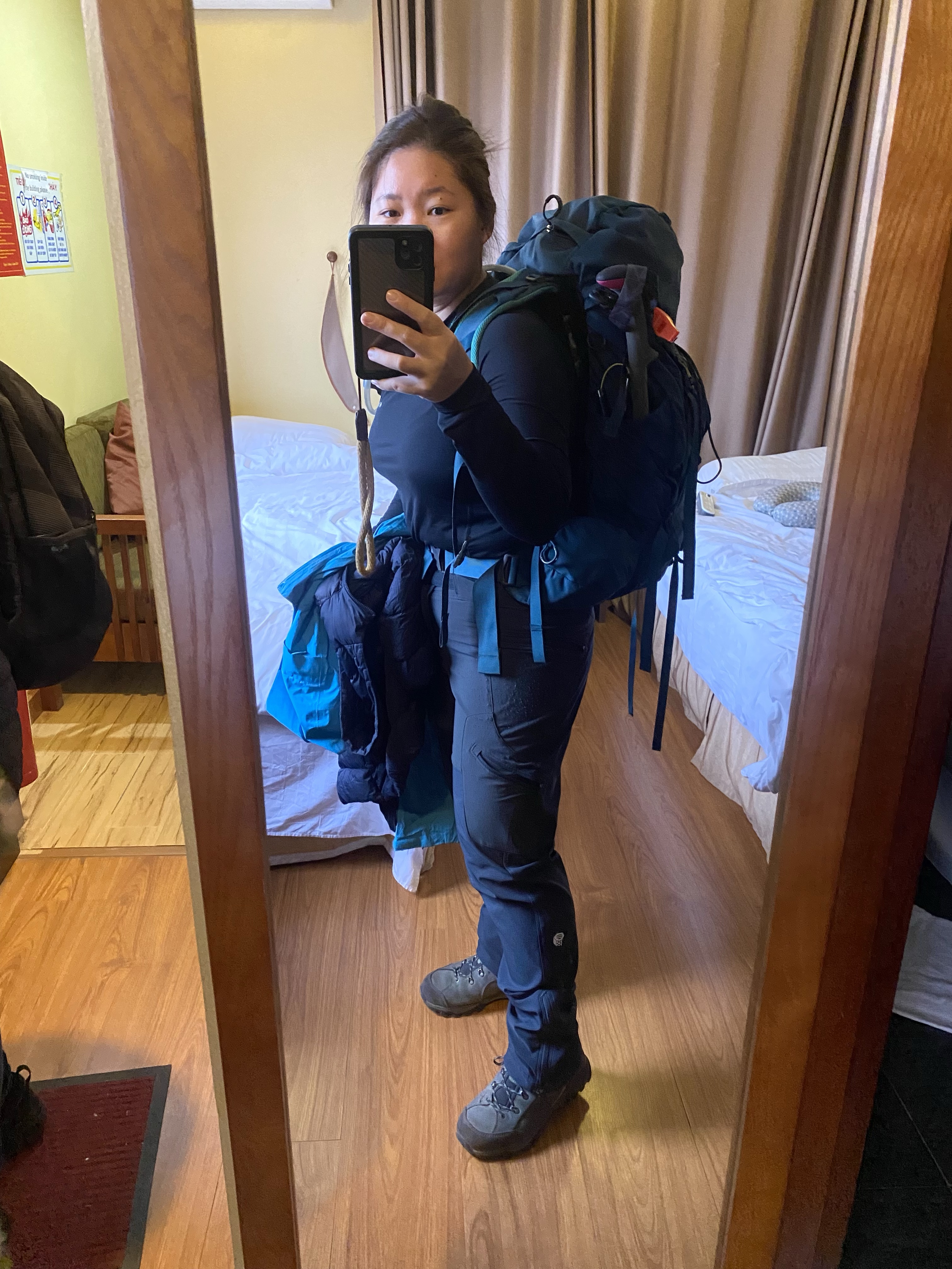 🌧️ ที่นี่คาดเดาอากาศไม่ค่อยได้ เจอทั้งฝนตก หมอก ลม แดด ครบทุกฤดูจริงๆ ช่วงเช้าเจอฝนตกแบบจริงจัง ดีที่จัดของในกระเป๋าเป้เป็นระบบกันน้ำหมดเลยไม่ค่อยห่วงอะไร แต่กางเกงเปียก เสื้อข้างในชื้นเหงื่อ ดาวน์แฉะๆ เลยตัดสินใจเปลี่ยนกางเกงกับเสื้อหนาวใหม่ตอนแวะทานข้าวเที่ยง ไม่อยากเสี่ยงเดินเปียกๆ หนาวๆ