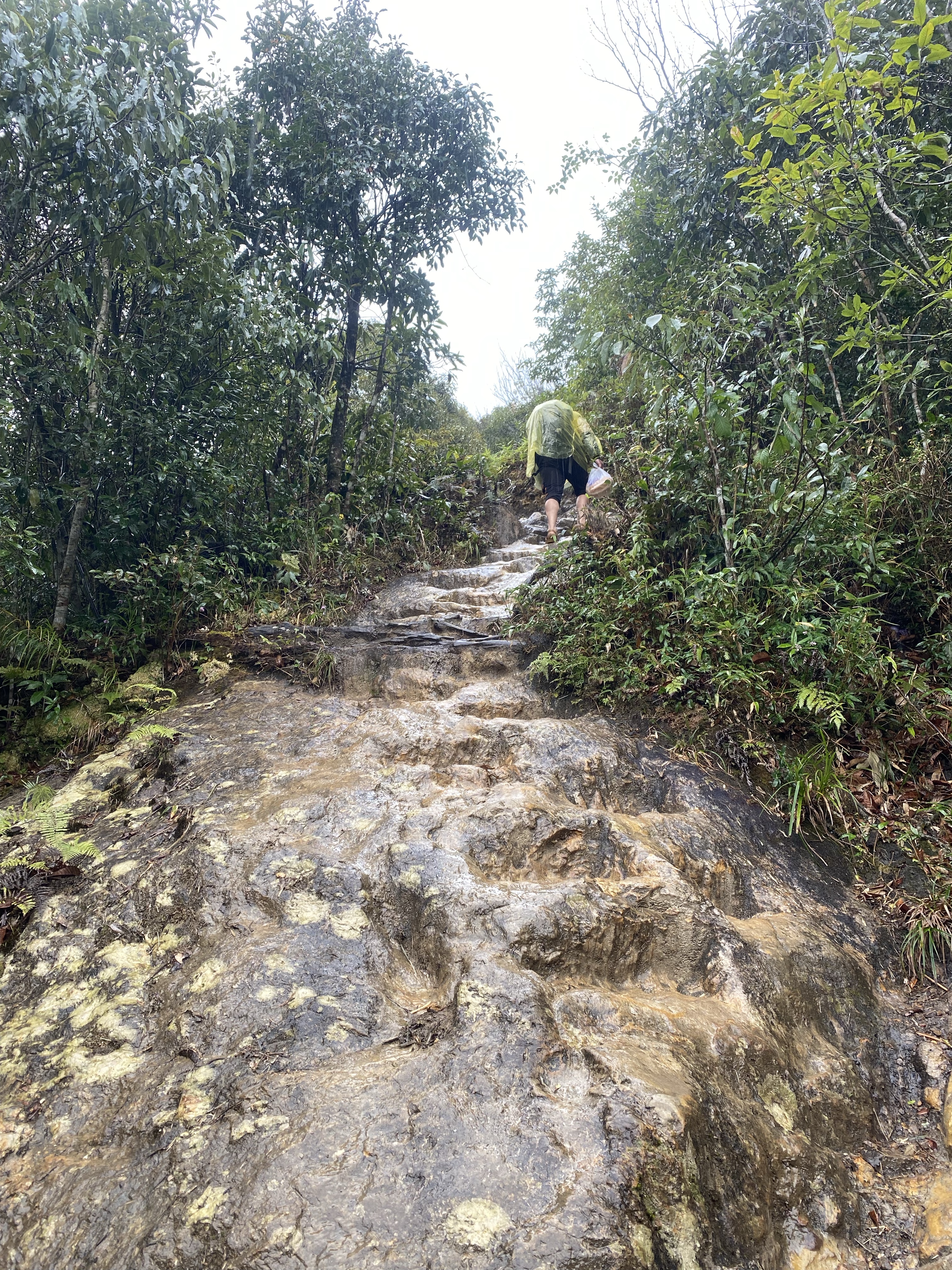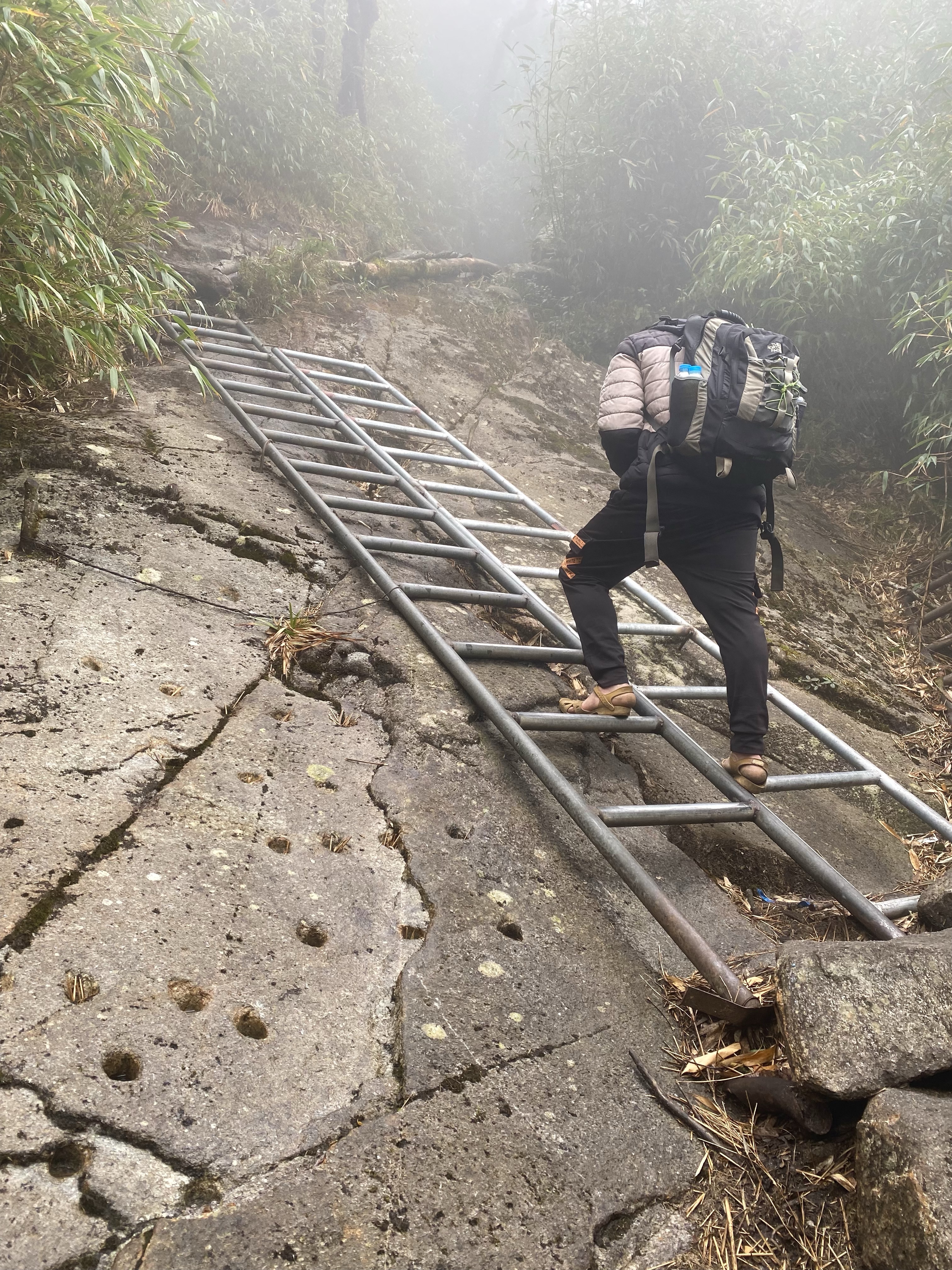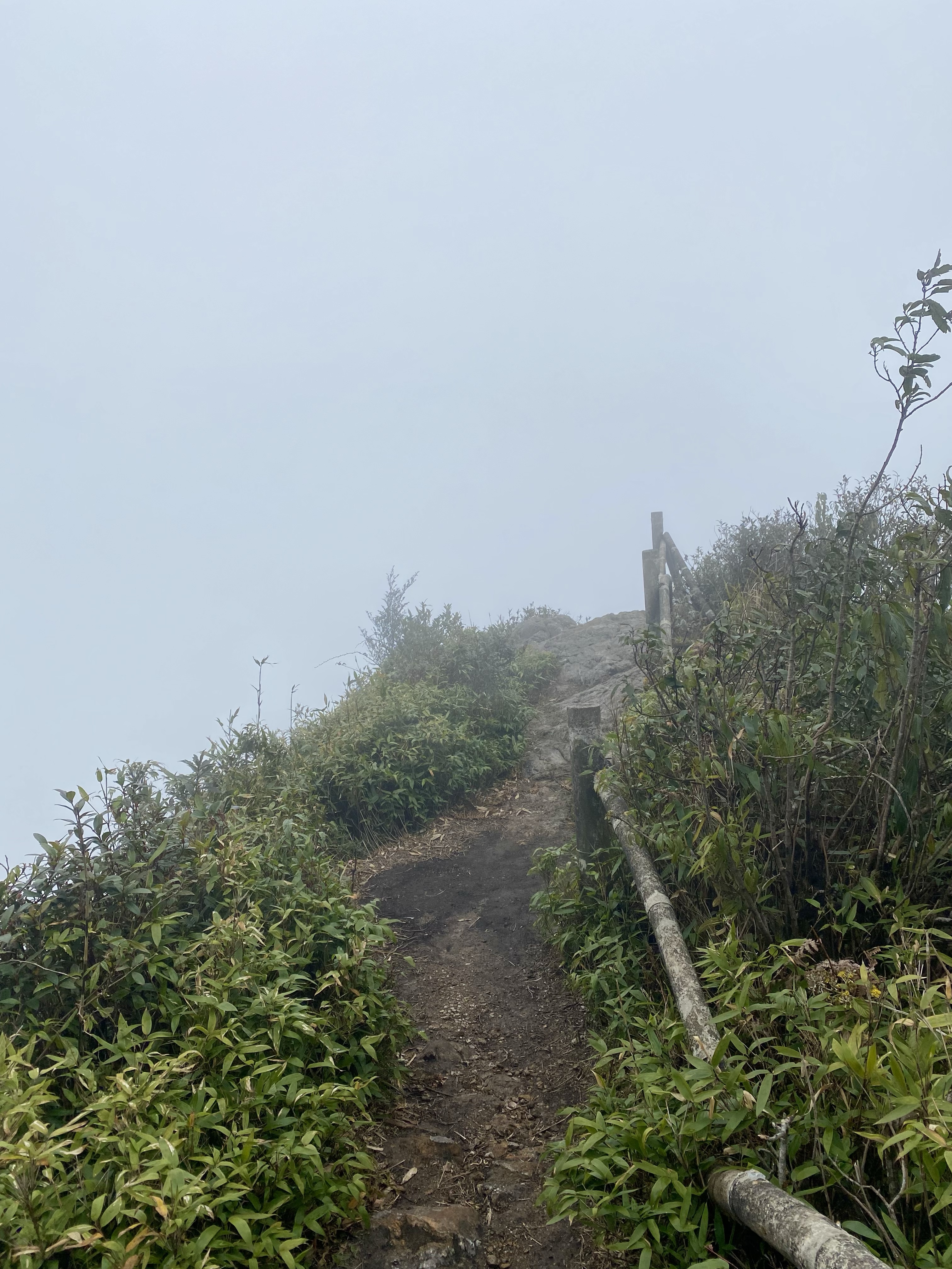 🌳 เส้นทางเป็นหิน เนินหิน บันไดหิน ยาวๆ ไป พื้นไม่ลื่นมาก มีขึ้นๆ ลงๆ แต่ส่วนใหญ่จะขึ้น วิวก็เป็นป่าโซนเอเชีย คล้ายๆ ไทยหน่อย แต่ไม่ดิบเท่า หมอกเยอะมากกก ขาวไปหมดจนแทบจะไม่เห็นวิวอื่น ช่วงแรกเหมือนแค่ทดสอบ ราบสลับเนิน เหมือนหลอกให้ตายใจ ช่วงกลางๆ เริ่มหนักขึ้น ชันขึ้น เป็นบันไดหินยาวๆ มีปีนบันไดลิงเหล็ก กับบันไดเหล็กธรรมดาแต่ชันมากก และเสียว พลาดคือตกเลย ส่วนช่วงท้ายชันที่สุดดดดดด บวกกับความสูงเหนือระดับน้ำทะเลที่เพิ่มขึ้นด้วย 😂 เลยแฮ่กๆ เหนื่อยเอาเรื่องอยู่ ช่วงท้ายๆ คิดว่าเมื่อไหร่จะถึงสักที ต้องเอาไม้ trekking pole ไปนะ อย่าหาว่าไม่เตือน 555
