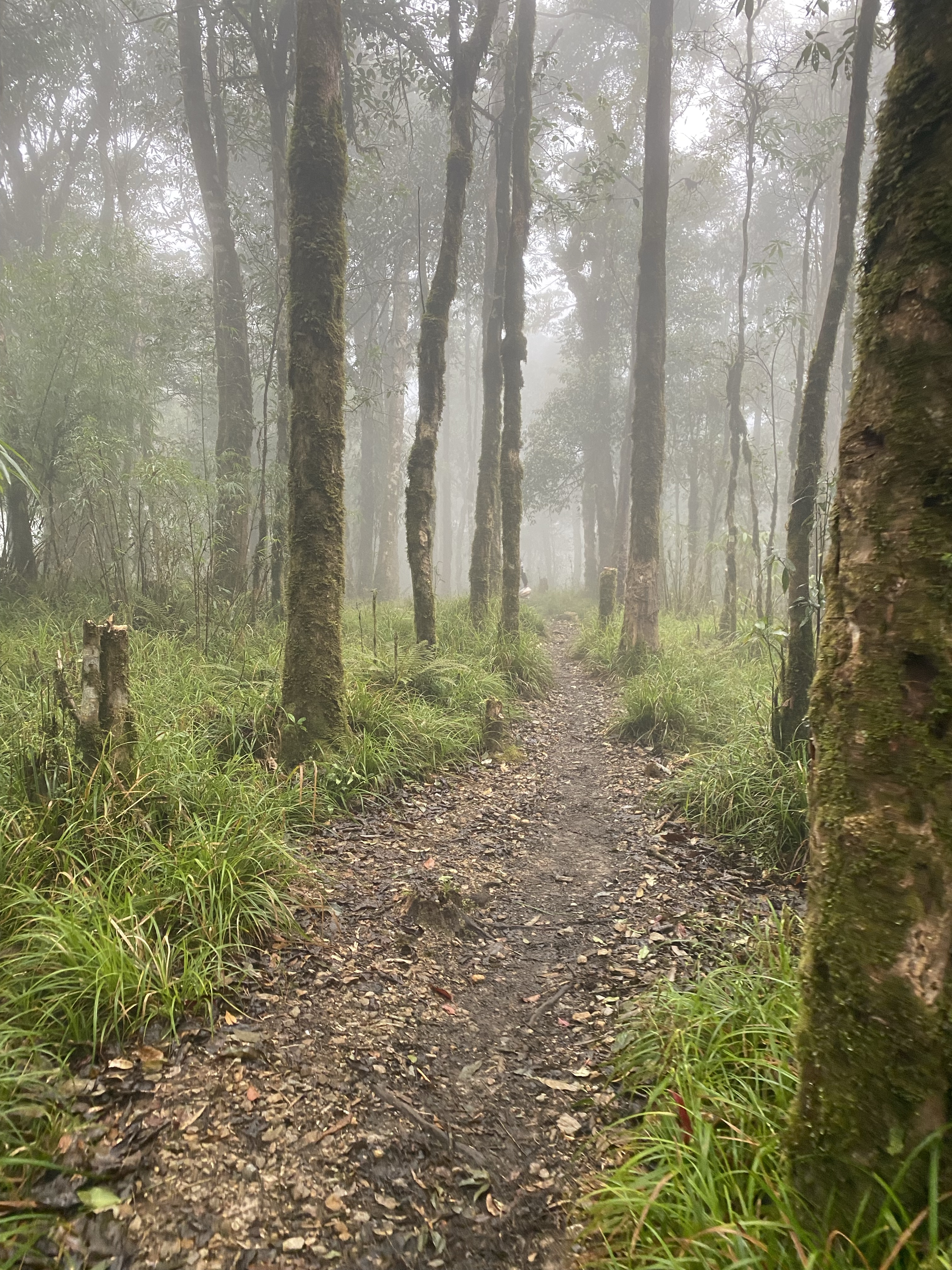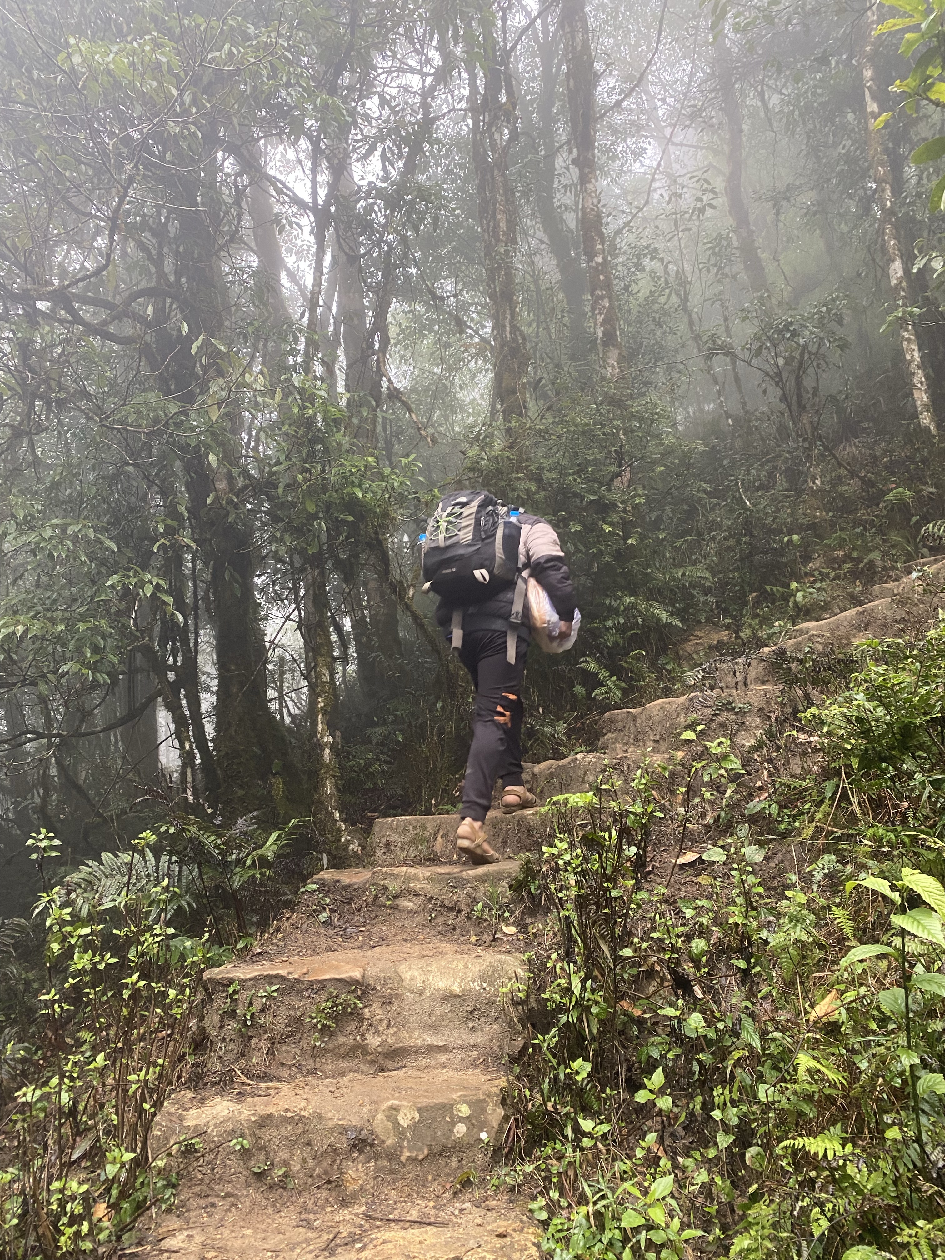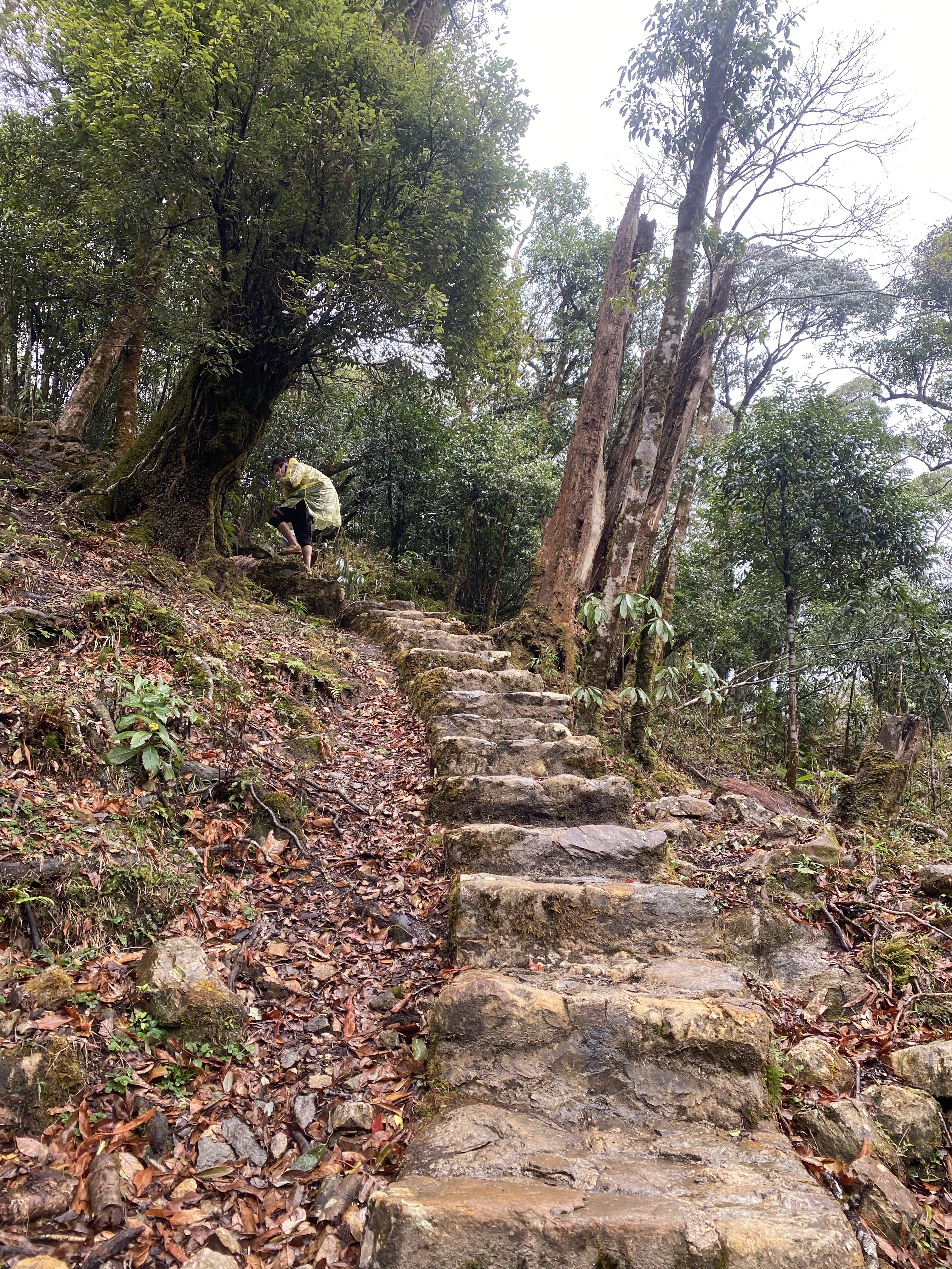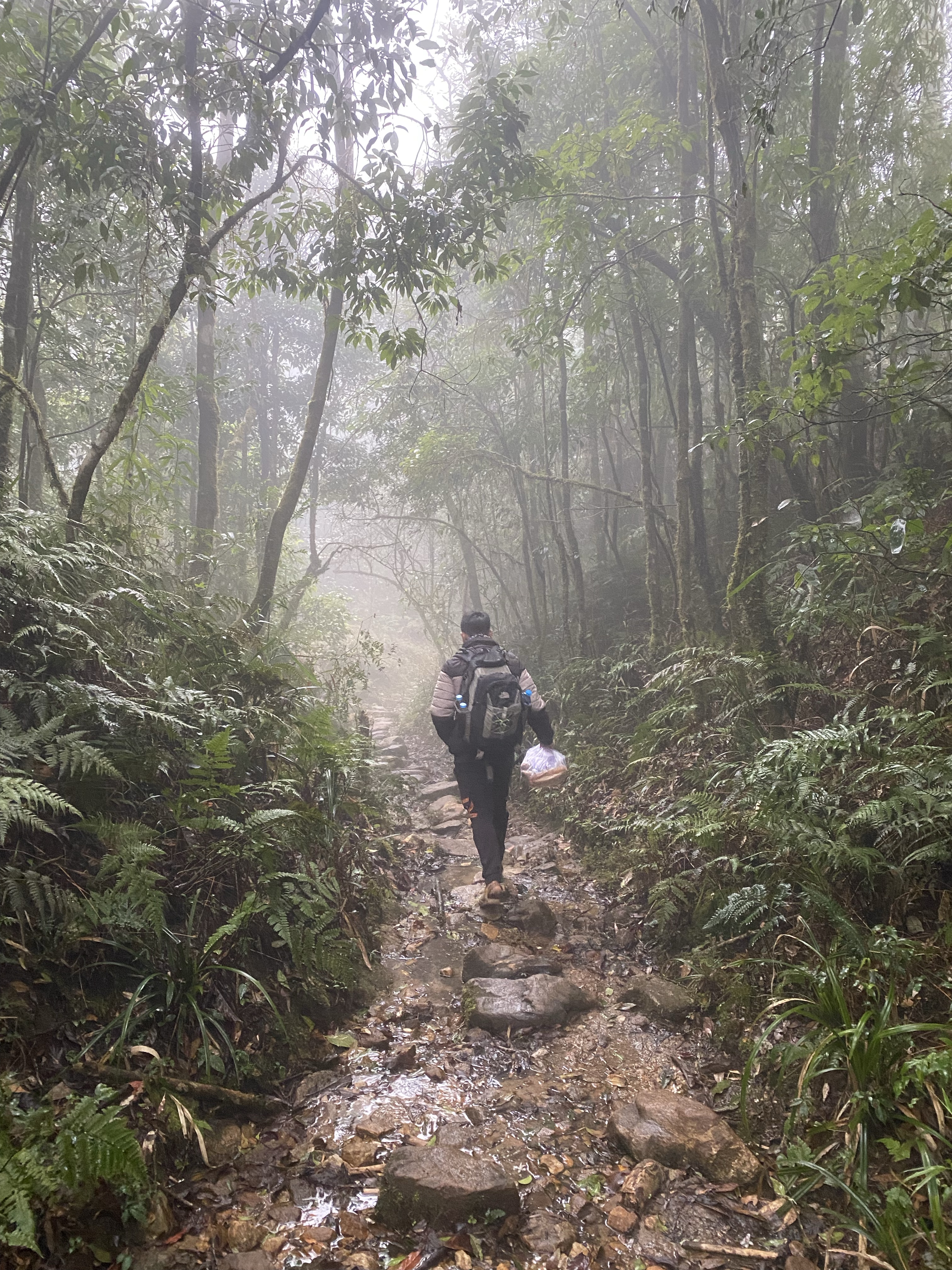 🌳 เส้นทางเป็นหิน เนินหิน บันไดหิน ยาวๆ ไป พื้นไม่ลื่นมาก มีขึ้นๆ ลงๆ แต่ส่วนใหญ่จะขึ้น วิวก็เป็นป่าโซนเอเชีย คล้ายๆ ไทยหน่อย แต่ไม่ดิบเท่า หมอกเยอะมากกก ขาวไปหมดจนแทบจะไม่เห็นวิวอื่น ช่วงแรกเหมือนแค่ทดสอบ ราบสลับเนิน เหมือนหลอกให้ตายใจ ช่วงกลางๆ เริ่มหนักขึ้น ชันขึ้น เป็นบันไดหินยาวๆ มีปีนบันไดลิงเหล็ก กับบันไดเหล็กธรรมดาแต่ชันมากก และเสียว พลาดคือตกเลย ส่วนช่วงท้ายชันที่สุดดดดดด บวกกับความสูงเหนือระดับน้ำทะเลที่เพิ่มขึ้นด้วย 😂 เลยแฮ่กๆ เหนื่อยเอาเรื่องอยู่ ช่วงท้ายๆ คิดว่าเมื่อไหร่จะถึงสักที ต้องเอาไม้ trekking pole ไปนะ อย่าหาว่าไม่เตือน 555