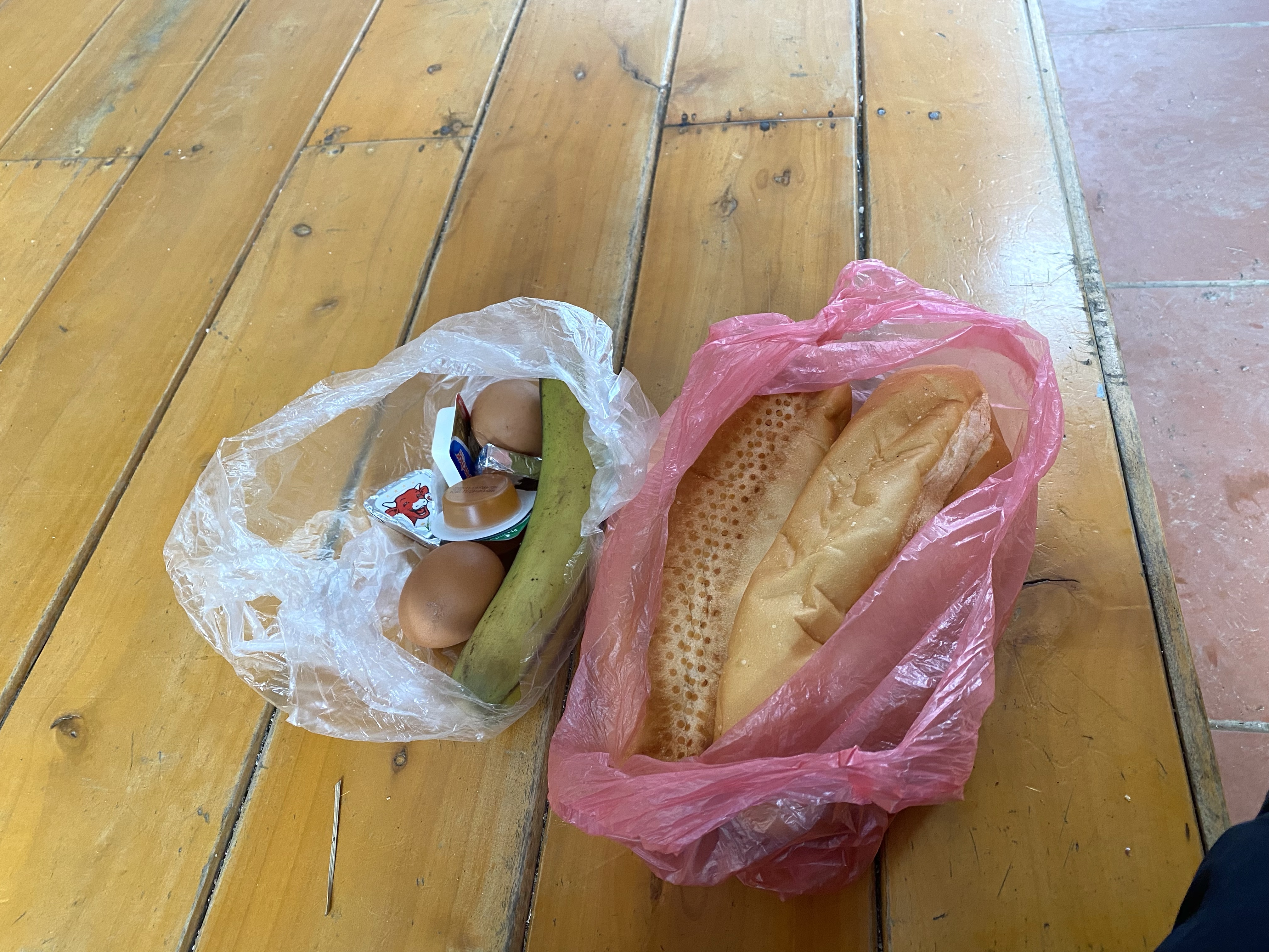 🥖 แวะพักกินข้าวกลางวัน ณ ความสูง 2200 เมตร เป็นขนมปังนิ่มๆ สไตล์เวียดนาม กินกับแตงกวา มะเขือเทศ ชีส 2 ก้อน เนย แยมส้ม ไข่ต้ม 2 ฟอง กล้วย 1 ลูก อิ่มมากกก ตรงจุดที่แวะทานข้าว เค้าสร้างเป็นอาคารทรงสามเหลี่ยมประมาณ 4 จุด เอาไว้หลบลม หลบฝนดีมาก