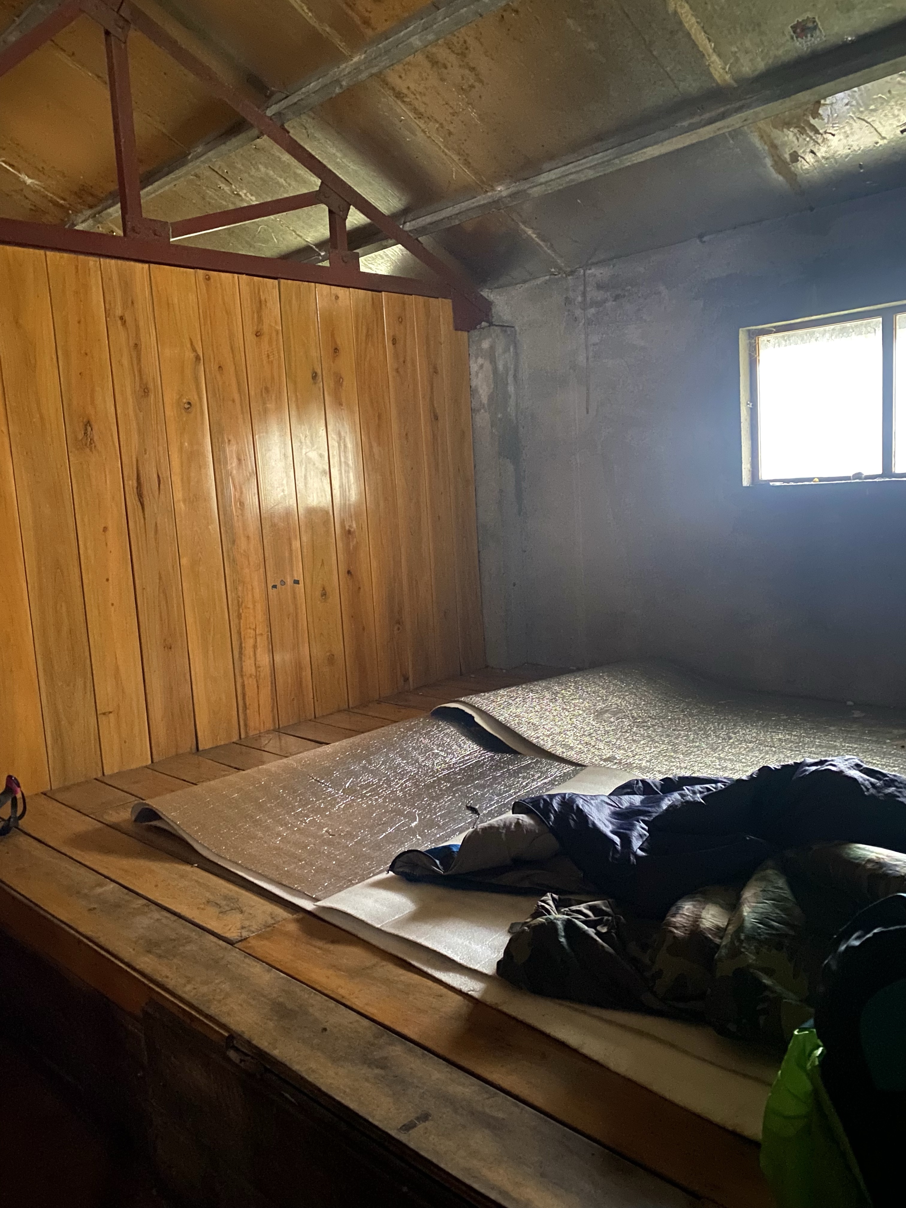 🛏️ บ้านพักคืนนี้ มีแผ่นรองนอนกับถุงนอนให้ ถุงนอนมีกลิ่นอับ บางจุดมีรู วัสดุเป็นใยสังเคราะห์เลยไม่อุ่นมาก แนะนำว่าควรเอา sleeping liner มาเองจะดีกว่า นี่เอาถุงนอนที่ทำจากผ้าห่มอวกาศไปเพราะเบาก็ใช้ได้ดีแต่ต้องรวบมัดไม่ให้อากาศเข้า ปูแผ่นรองนอนหลายๆ ชั้น ที่นี่ไม่มี heater อากาศหนาวประมาณเลขตัวเดียว ลมพัดโกรกตลอด ห้องน้ำเป็นแบบนั่งยองแบบกดน้ำได้ ไม่มีน้ำร้อนนะ ไม่ต้องอาบน้ำ ค่อยอาบทีเดียวตอนลง ไม่มีที่ชาร์จไฟ ต้องเอา powerbank มานะ และข้างบนไม่มีสัญญาณมือถือด้วย