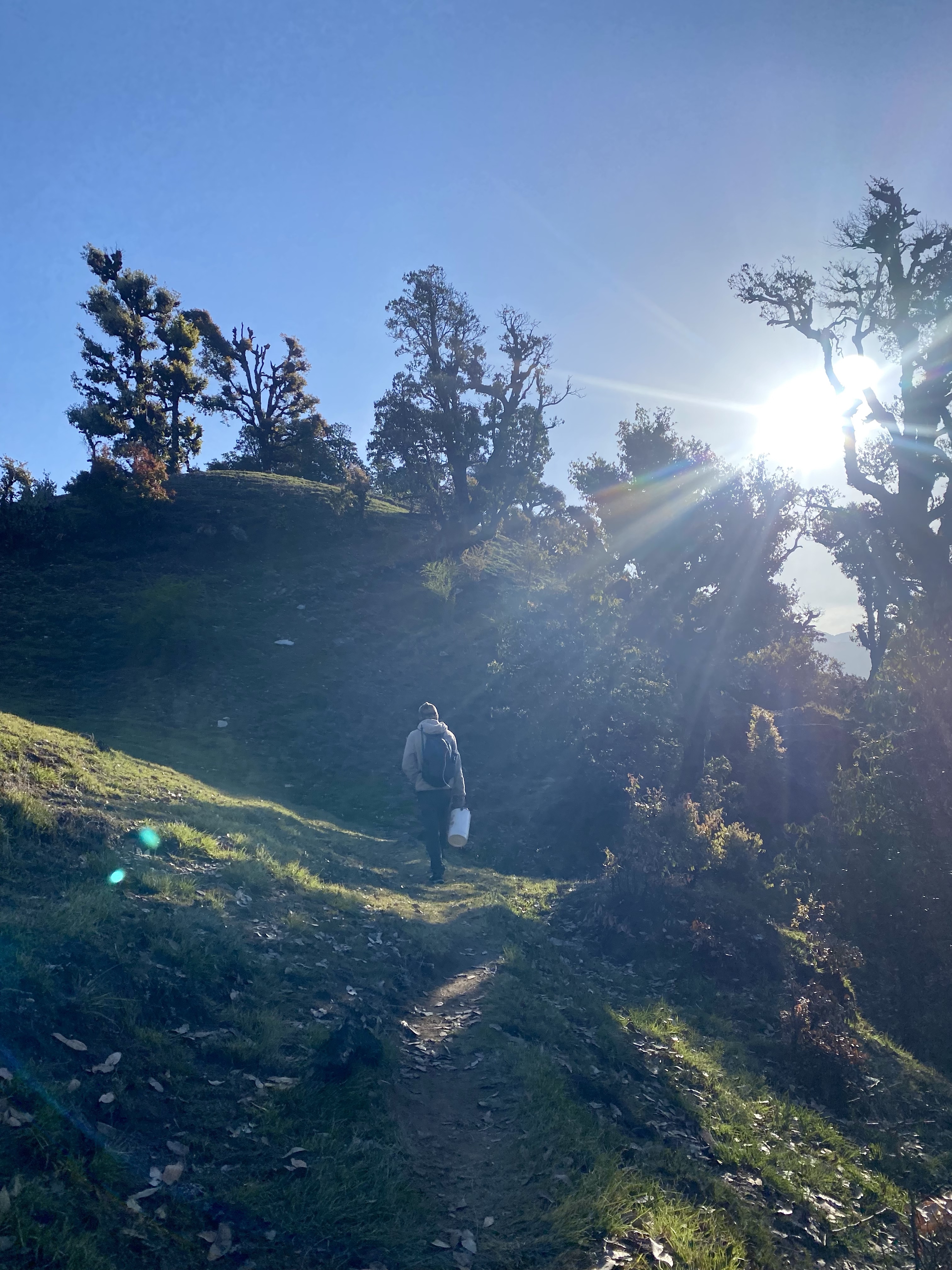 🌳 Day 3 เริ่มเดิน 6.00 จาก Deoriatal (2400 m) ไป Baniyakund (2600 m) via Rohini Bugyal ถึง 15.00 ระยะทาง 16 km elevation gain 1200 m ใช้เวลาประมาณ 7-8 ชั่วโมง เส้นนี้เรียก Chopta ทางเป็นภูเขา ต้นไม้ ป่า อากาศเย็นสบาย แต่กลางวันร้อนแดด แพ็คอาหารกลางวันไปทาน วันนี้จะเหนื่อยสุด เดินนานสุด gain ใช้ได้เลย เดินขึ้นๆ ลงๆ เขา เส้นนี้จะจบที่ถนน แล้วนั่งรถไปที่แคมป์อีกประมาณ 15 นาที คืนนี้นอนแคมป์ มีผ้าห่ม ห้องน้ำให้ ไม่มีสัญญาณมือถือ