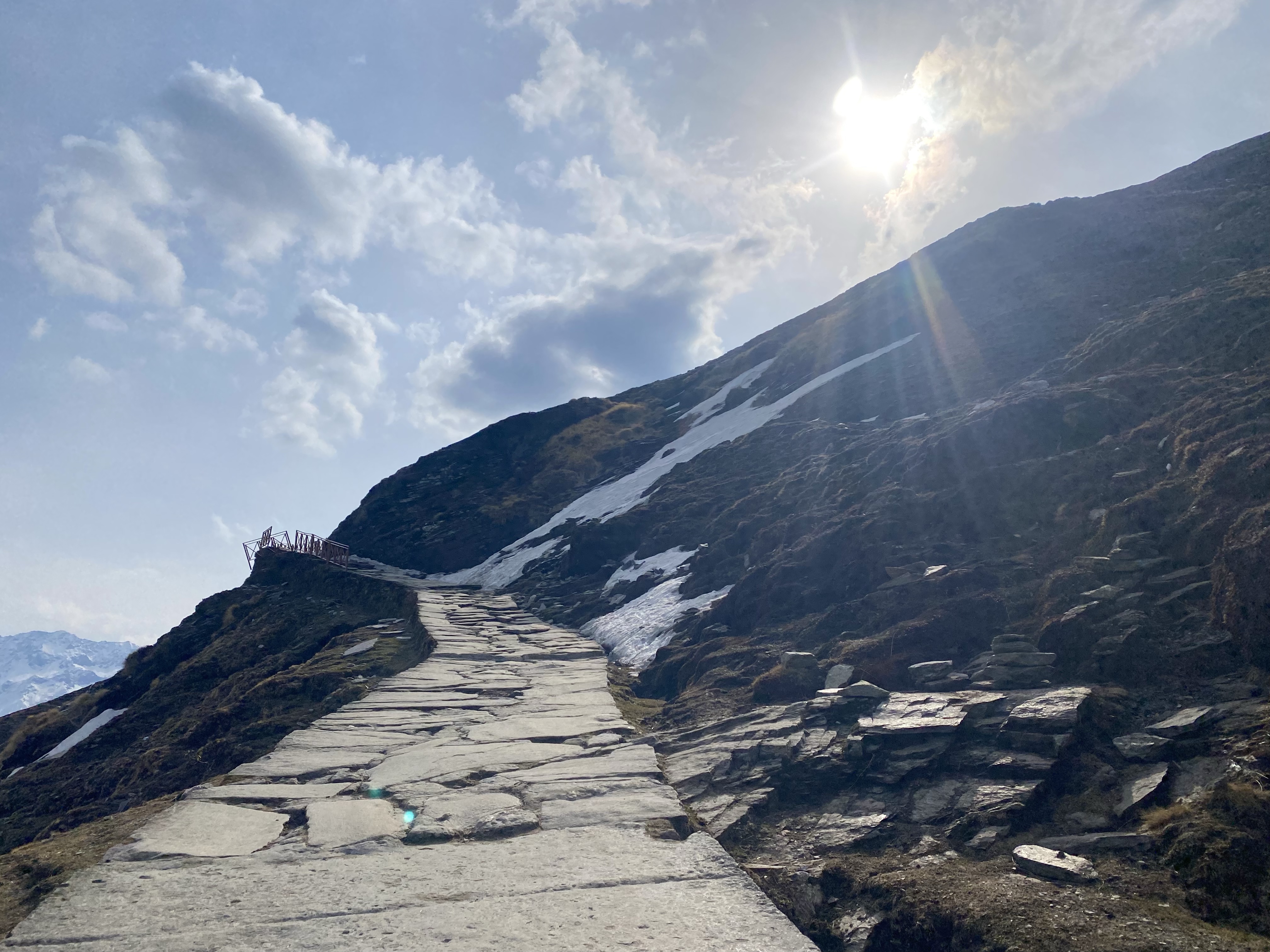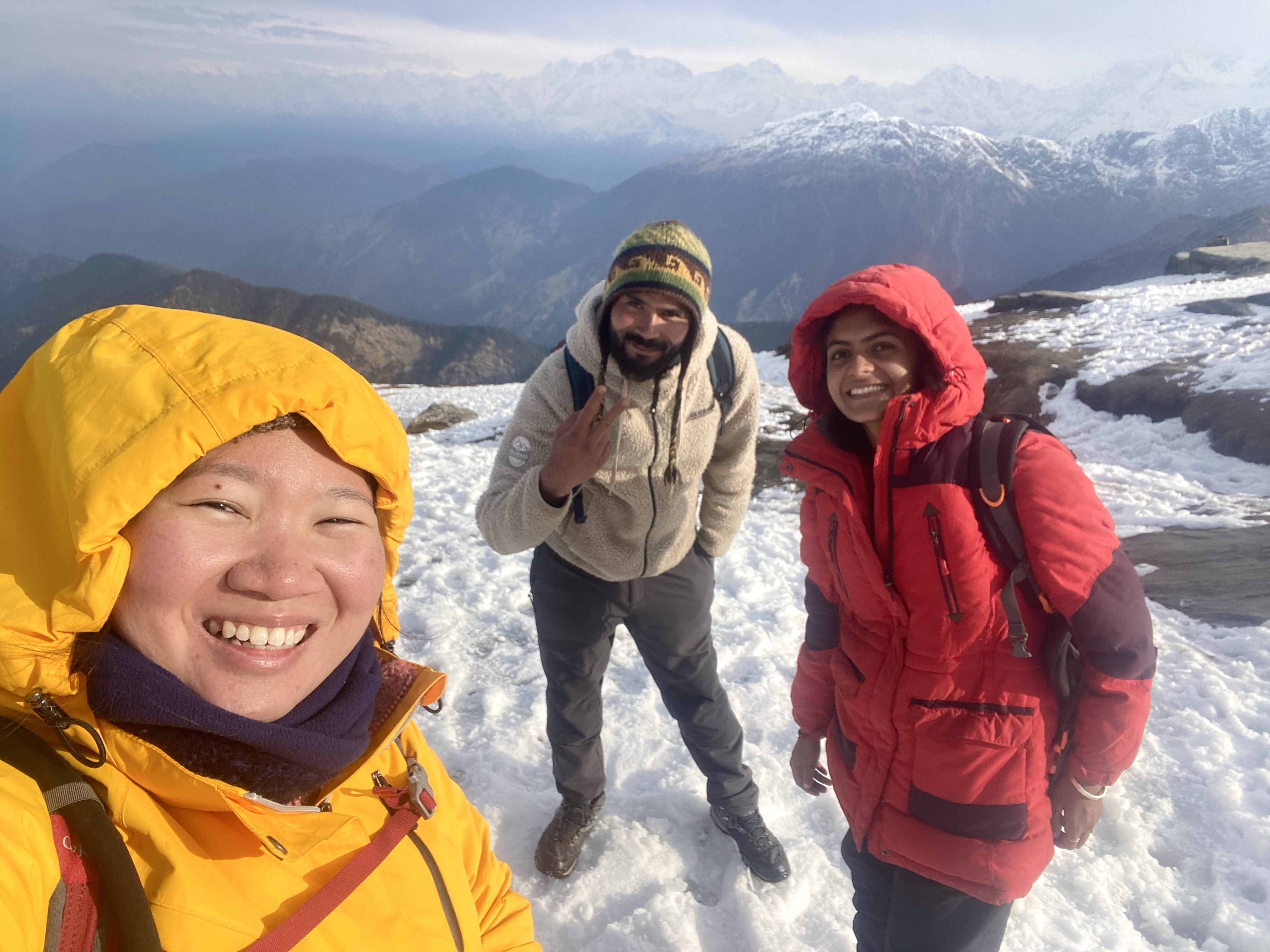 🏔️ Day 4 วันขึ้นยอด ทานข้าวเช้า 02.15 ออกรถ 02.30 ไปเริ่มเดินขึ้น Chandrashila (3700 m) ตอน 03.00 ระยะทาง 4.5 km elevation gain 570 m ใช้ระยะเวลาประมาณ 3-4 ชั่วโมง ทางเป็นเนิน > บันไดสะส่วนใหญ่ ช่วงล่างเดินง่าย พอขึ้นยอด จะหิมะปกคลุม และค่อนข้างชันมาก เดินไปเรื่อยๆ พักให้น้อยๆ ควรไปถึงยอดภายในพระอาทิตย์ขึ้นนะ ไม่งั้นหิมะละลาย จะลื่นมาก ลมเย็น อากาศหนาว เครื่องแต่งกายควรกันลม กันน้ำ กันหนาวมากหน่อย ช่วงท้ายจะต้องใช้โซ่หนามติดรองเท้าด้วย (Microspikes) ซึ่งทางบริษัทเตรียมมาให้ วิวสวยมาก เห็นเทือกเขาหิมาลัย สักการะศาล Chandrashila แล้วเดินลงมาสักการะเทวาลัย Tungnath Temple (3450 m) ซึ่งเป็นวิหารที่สูงที่สุดของพระศิวะ เสร็จสิ้นภารกิจก็กลับมานอนที่เดิม
