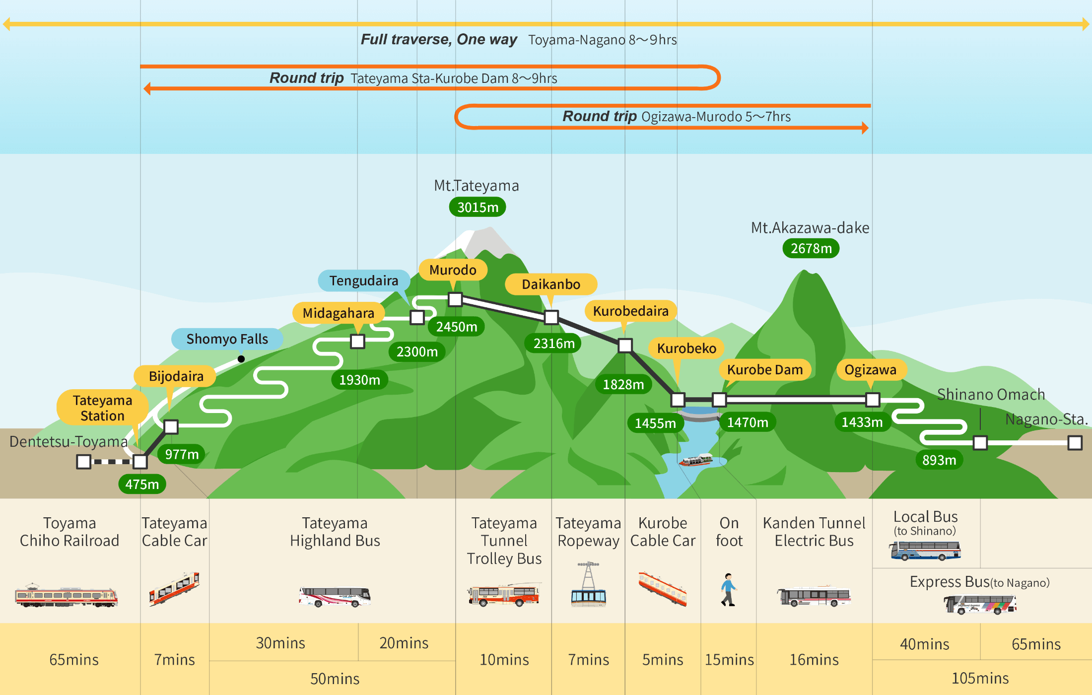 🚠 Nagano —> Murodo 2 ชั่วโมง 23 นาที (เดินทางหลายต่อ ลำบาก ใช้เวลานานกว่า)