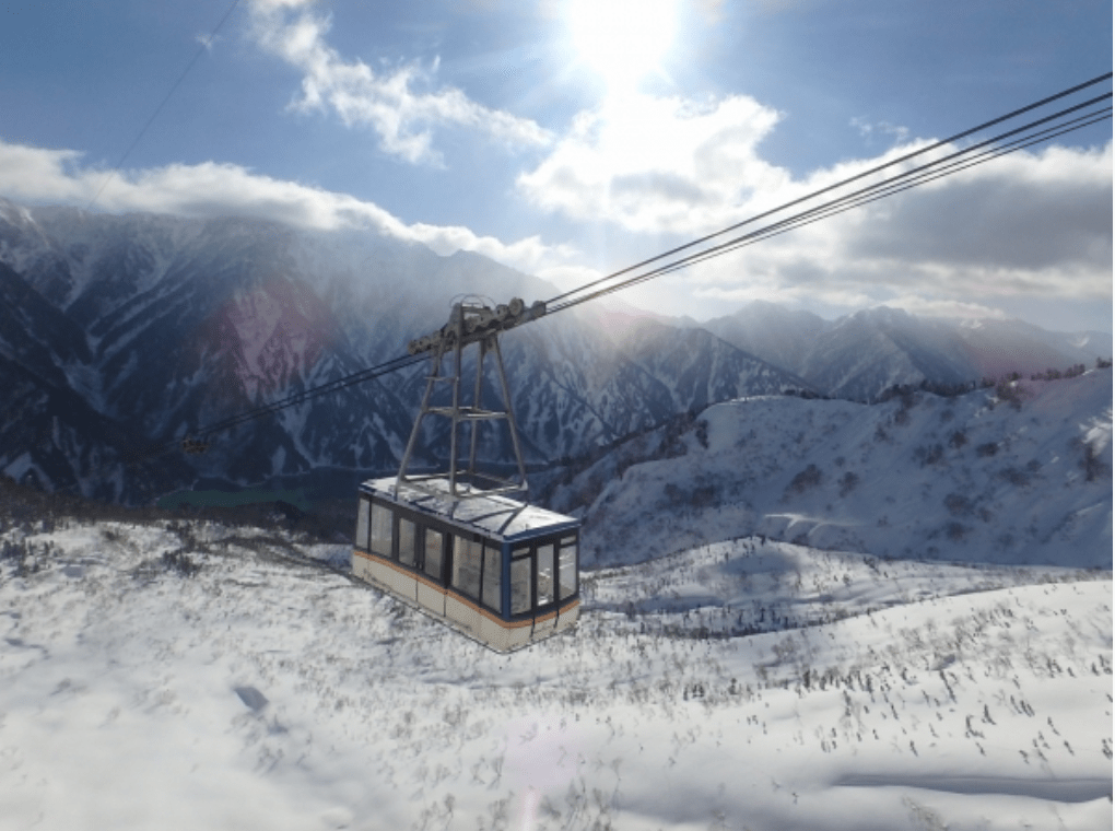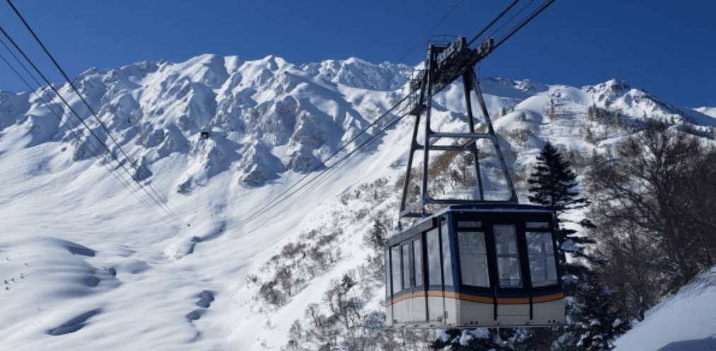 – จาก Kurobedaira ขึ้นกระเช้า Tateyama Ropeway ไปยัง Daikanbo ใช้เวลา 7 นาที