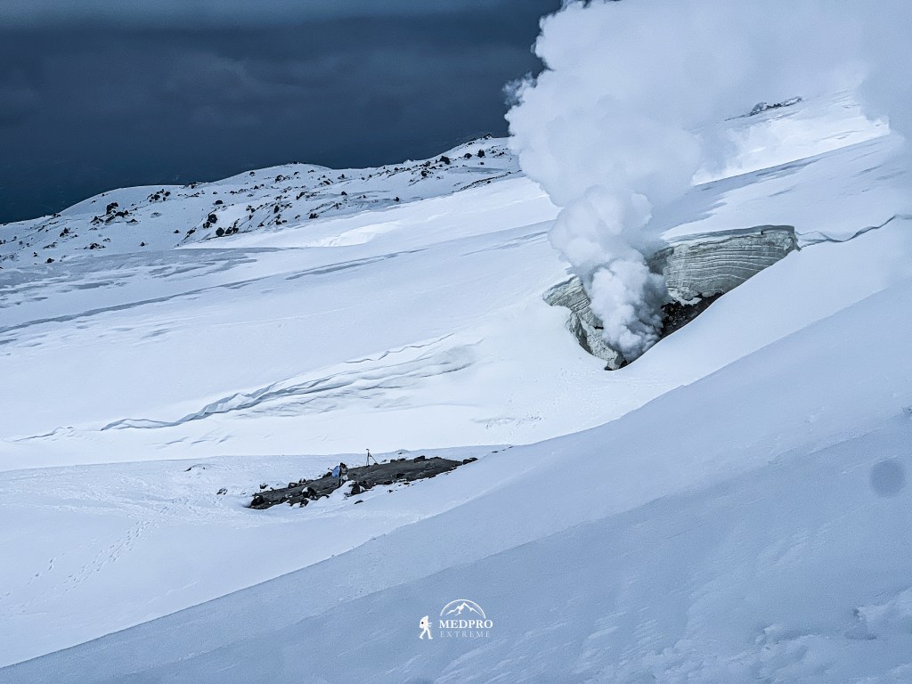 แต่วิวก็คือสวยอลังการมากกกก คุ้มค่าสุดด ระหว่างทาง เราจะเห็นปล่องไอน้ำร้อน (fumaroles) เป็นควันหนาๆ ขนาดใหญ่พุ่งไปบนท้องฟ้าตลอดเวลา มีกลิ่นกำมะถันลอยมาบางช่วงด้วย ตรงบริเวณที่มีปล่องไอน้ำร้อน เราจะเห็นพื้นดินสีเหลืองแดงจากหิมะที่ละลาย บางจุดก็จะมีลำธารของน้ำร้อนที่ไหลผ่านหิมะ