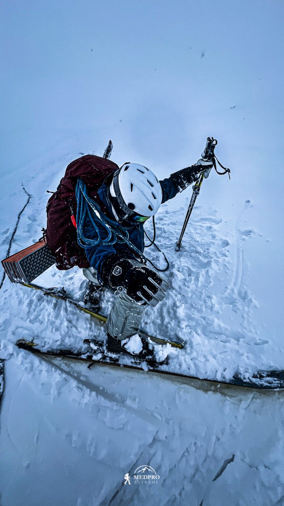 “แต่ถ้าเราทิ้งอุปกรณ์ไว้ก็เสี่ยงอีก เพราะถ้าลงไปแล้วเกิดอะไรขึ้น เราจะไม่มี survival gear ติดตัวเลย มิหนำซ้ำ เวลาใกล้เย็น เราเหนื่อยมาทั้งวัน การสกีลงก็ต้องใช้ทั้งสมาธิและกำลังอีก อาจจะเสี่ยงอุบัติเหตุซ้ำซ้อน”