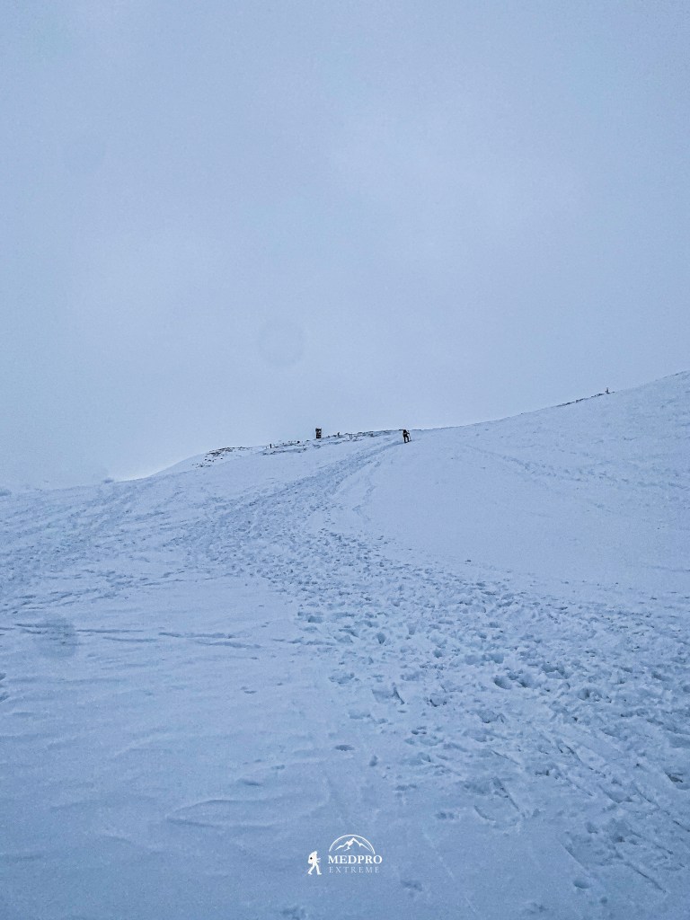 เราตื่นเช้ามา เก็บของ เก็บเต้นท์ เริ่มเดินทางกลับไป Trailhead แต่เรากลับเจอกับ Whiteout โดยไม่ทันตั้งตัว สภาพอากาศเปลี่ยนแปลงอย่างรวดเร็วมากจนน่าตกใจ จากท้องฟ้าที่โปร่ง เห็นวิวของทะเลสาบและเมืองข้างล่าง ทัศนวิสัยค่อยๆ แย่ลง จนมันขาวโพลนไปหมด ระยะมองเห็นไม่ถึง 10 เมตร เห็นแต่พื้นหิมะเท่านั้น ซึ่งเราเช็คพยากรณ์อากาศทุกเช้าและก่อนเข้านอน แดดออกจริง แต่เมฆเยอะ ไม่มีพายุหิมะ ตอนแรก Whiteout ยังไม่แย่มาก มันเป็นๆ หายๆ สักพักทัศนวิสัยก็กลับมาดี แต่หลังจากครั้งที่ 4-5 เริ่มแย่ลงเพราะมันขาวโพลนไปหมด มองไม่เห็นอะไรเลย ไม่เห็นเส้นขอบฟ้าแล้วก็วิวด้านล่างเลย ทุกอย่างเหมือนกันไปหมด…